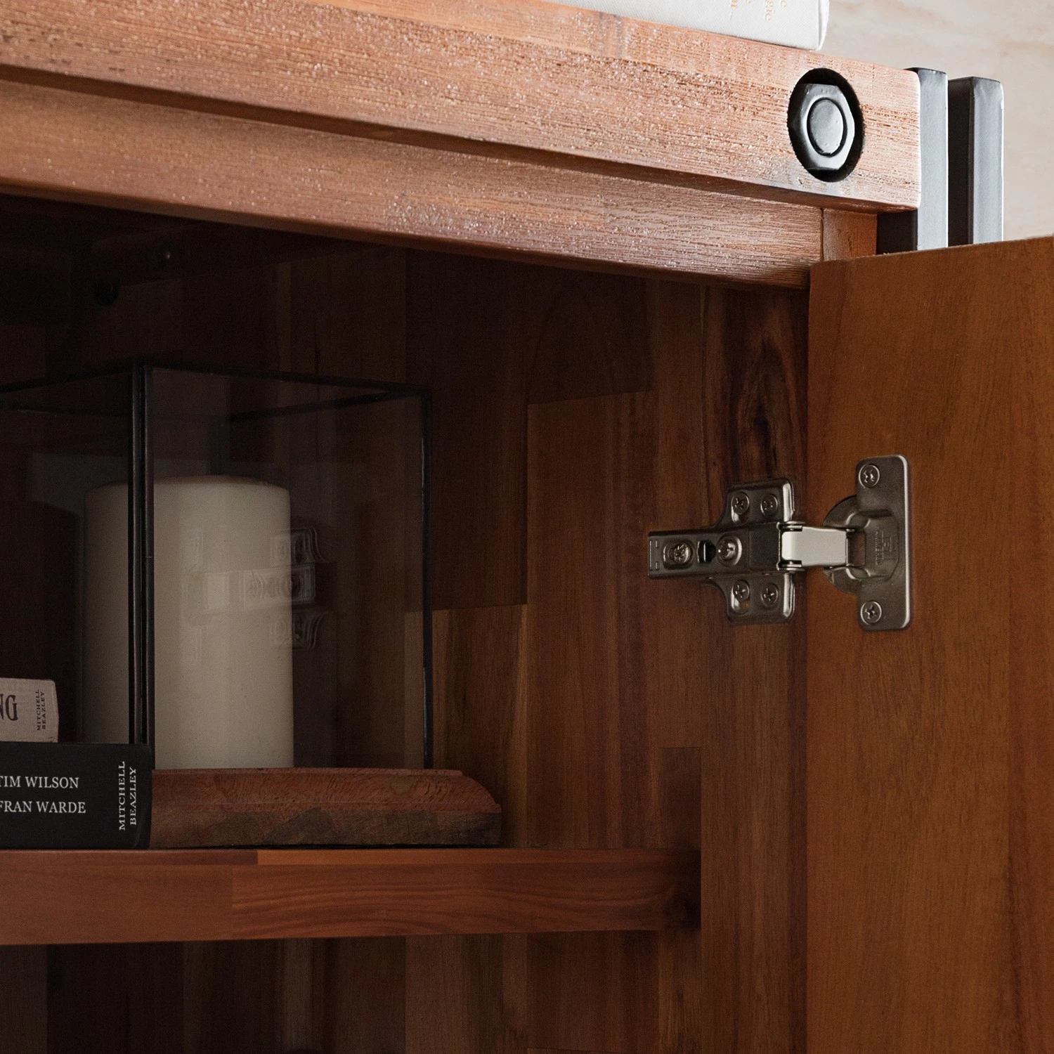 - Front: MDF (Mitteldichte Holzfaserplatte), furniert