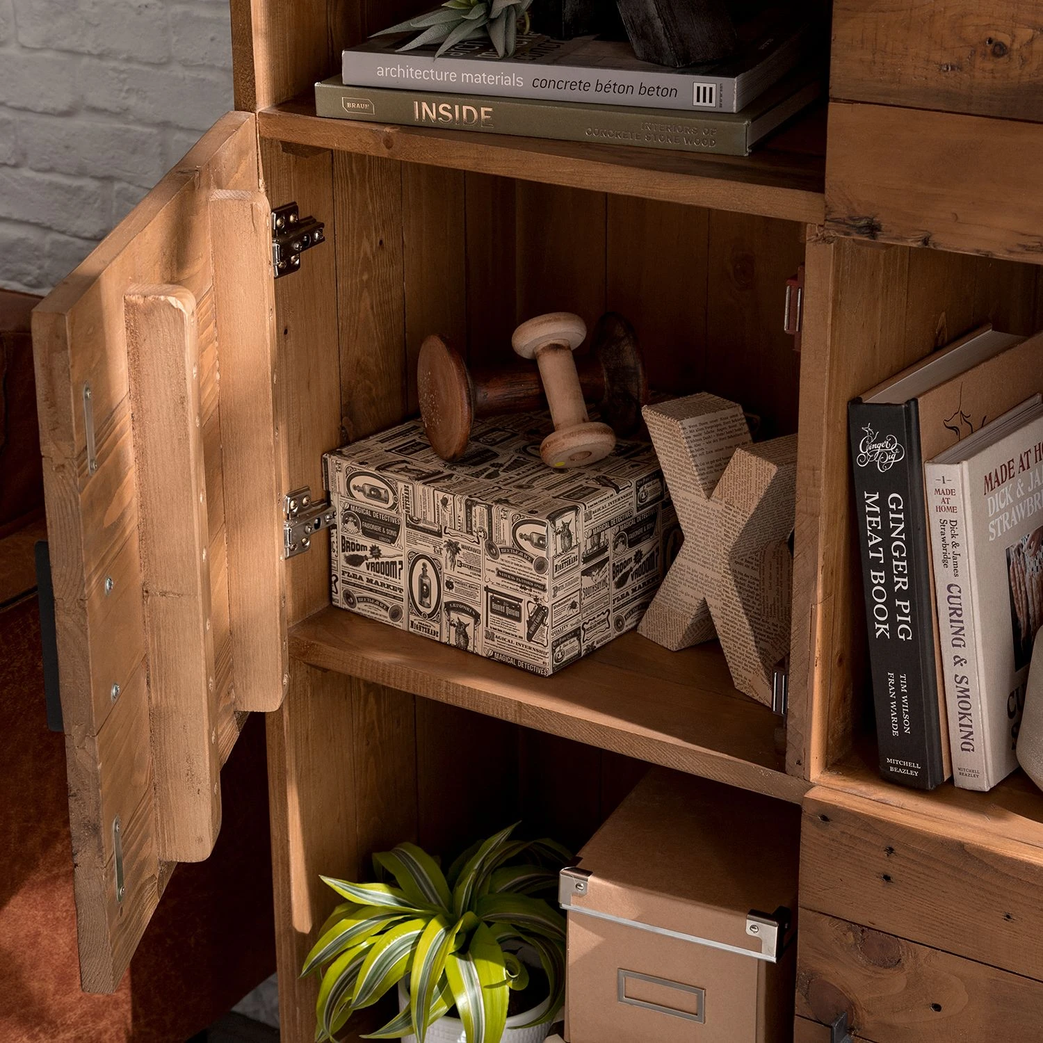 - Front & Korpus: Altholz Pinie, lackiert