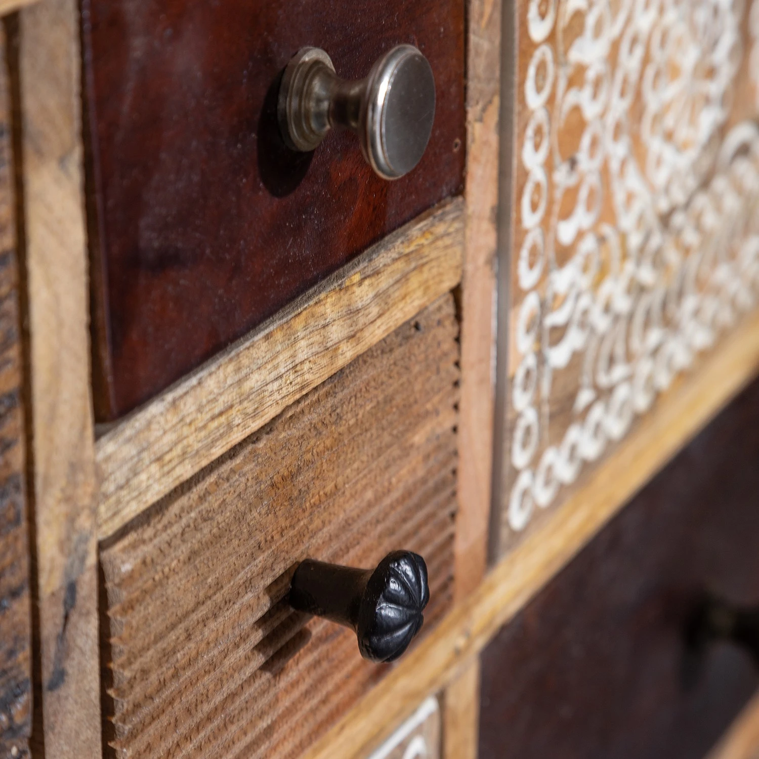 - Front & Korpus: Massivholz Mango, gebeizt & lackiert