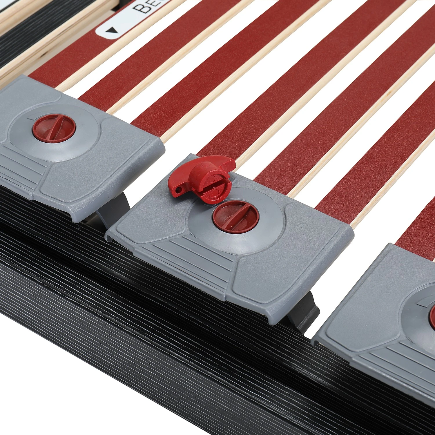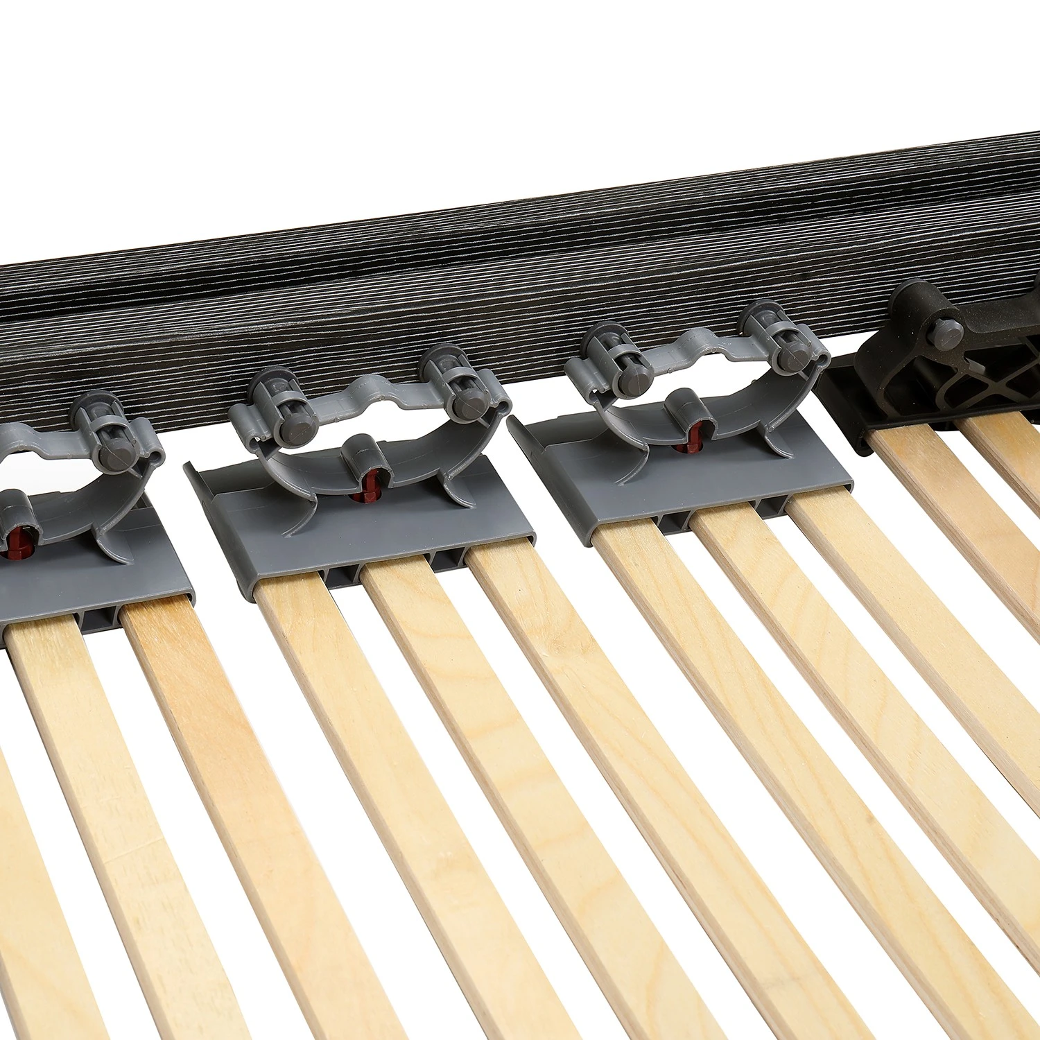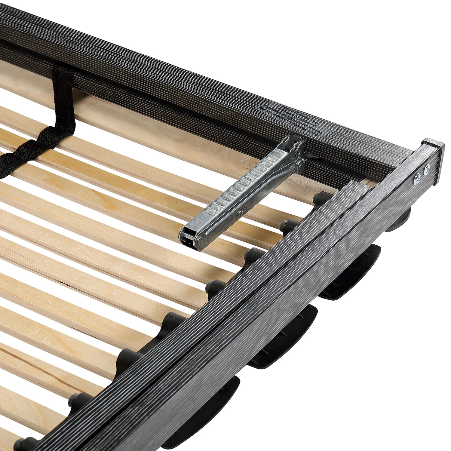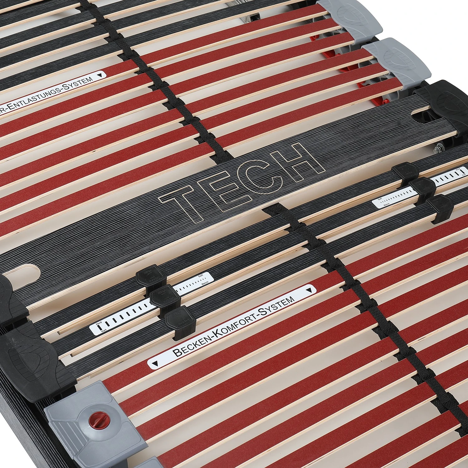 Hochwertiger Schlafkomfort bei maximalen Einstellmöglichkeiten, das zeichnet den 7-Zonen-Lattenrost Premium aus. Die 42 superelastischen Federholzleisten in spezieller High-Quality-Construction garantieren das optimale Einsinken in Seitenlage und die perfekte Stützung in Rückenlage. Mit der sehr fein einstellbaren Lordosen- und Beckenzone, der 6-fach Härteverstellung mittels Schiebeelementen, sowie dem mehrfach verstellbaren Kopf- und Fußteil kann der Rahmen an die persönlichen Bedürfnisse angepasst werden. Ideal auch für Doppelbetten geeignet.