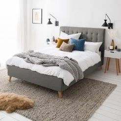 Mørteens Polsterbett Karelia I – Strukturstoff Mali: Grau – 180 x 200cm – Ohne Stauraum