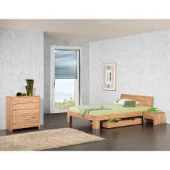 Neue Modular Massivholzbett Provence II – Massivholz Kernbuche, mit Kopfteil – 140 x 200cm