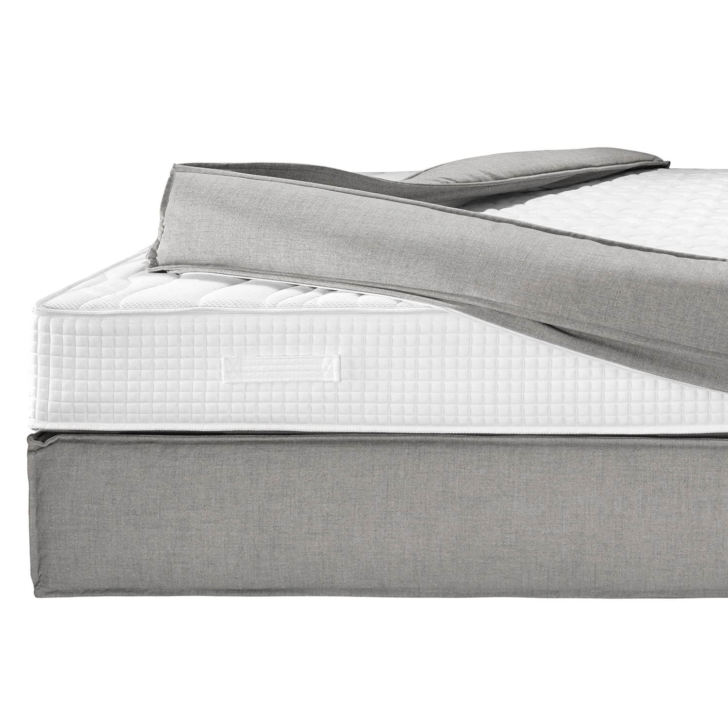 Dem mit grauen Webstoff bezogenem Boxspringbett Kinx sieht man auf den ersten Blick die Gemütlichkeit an. Ob in Verbindung mit einer modernen Einrichtung oder im klassischen Landhausstil, das attraktive Bett integriert sich problemlos und ist das Highlight in jedem Schlafbereich. Ein üppig gepolstertes hohes Kopfteil garantiert Komfort und Wohlgefühl. Die hohe Liegehöhe des Boxspringbettes Kinx ermöglicht einen angenehmen Ein- und Ausstieg und ein wohltuendes Liegegefühl. Attraktives Design und hochwertige Materialien machen das Bett zu einer echten Wohlfühloase.