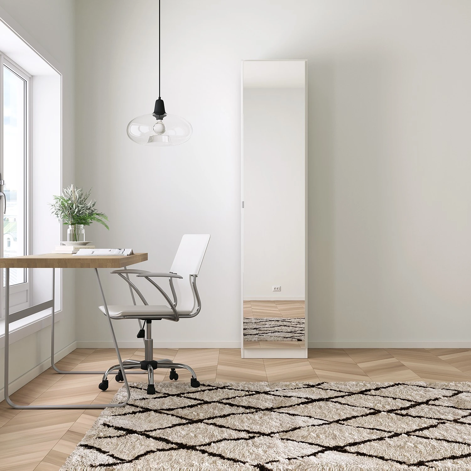 Der praktische Drehtürenschrank KiYDOO I lässt sich dank seiner klaren Formgebung und der lichten Erscheinung vielseitig kombinieren. Seine klare Front fügt sich in jedes Schlafzimmer gut ein und kann mit weißem Korpus oder Holzoptik kombiniert werden. Verschiedene Größen – je nach Platz und Platzbedarf – stehen zur Auswahl. In der hochwertigen Spiegeltür kann das Outfit für den Tag gleich überprüft werden. Weiteres Zubehör für die Innenausstattung nach Gusto ist im Shop erhältlich. Somit lässt KiYDOO I keine Wünsche offen.