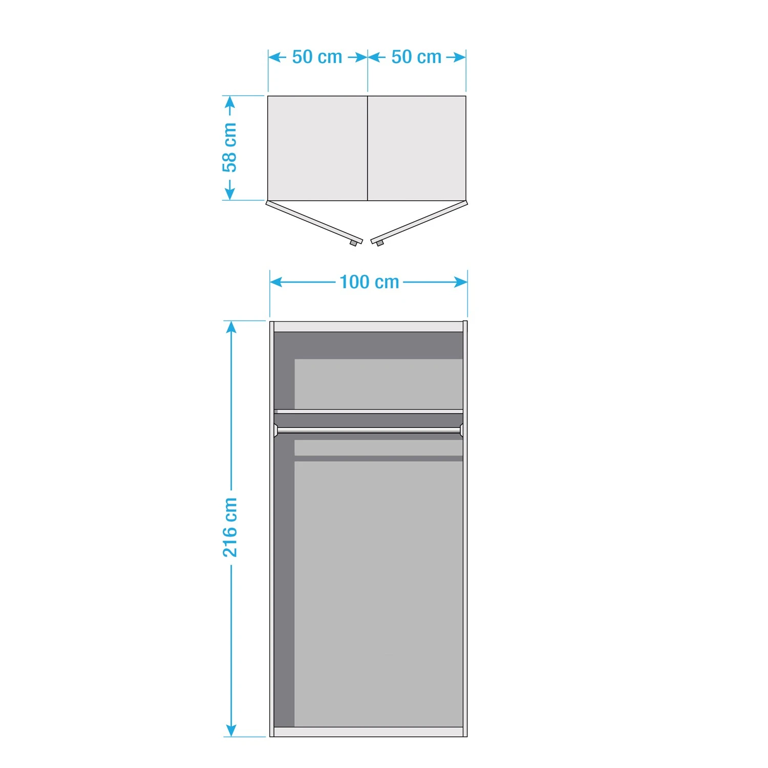 - Breite: 100 cm Höhe: 216 cm Tiefe: 58 cm Inneneinteilung: 100 cm