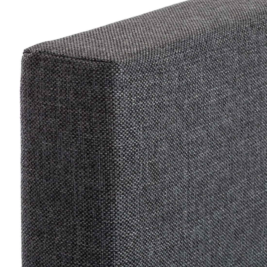 Das große Doppelbett ist in einem warmen Grauton gehalten. Der hochwertige Stoffbezug fühlt sich am großen Kopfteil besonders komfortabel an. Es ist daher perfekt fürs gemütliche Anlehnen beim allabendlichen Lese- oder TV-Vergnügen geeignet.
