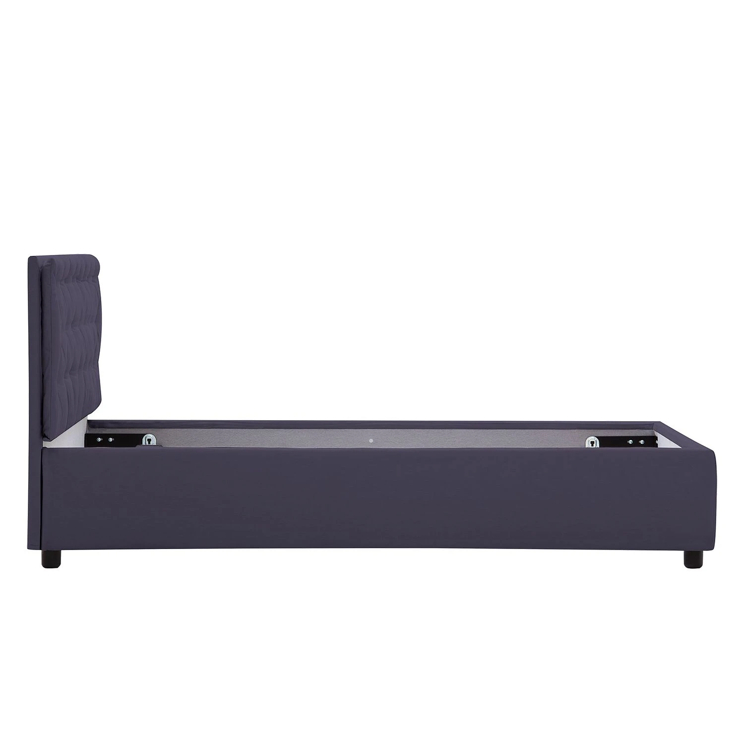 - Die schicke Knopfheftung des Polsterkissens und der rundum textilüberzogene Bettrahmen machen den optischen Reiz dieses Bettes aus.