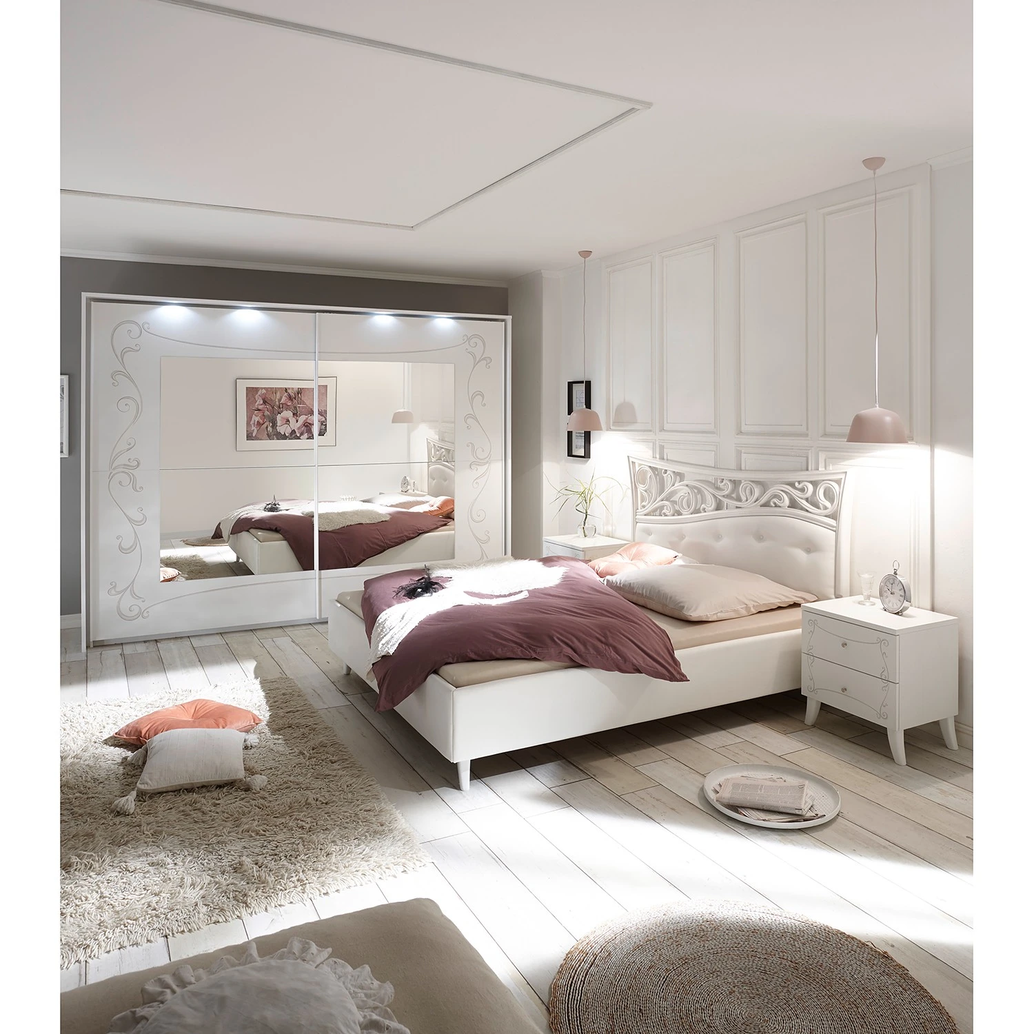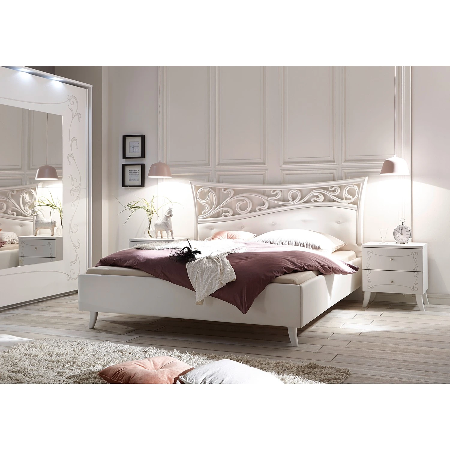 - Weitere Qualitätsmerkmale: dekoratives, extravagantes Kopfteil; Füße massiv weiß Lack matt