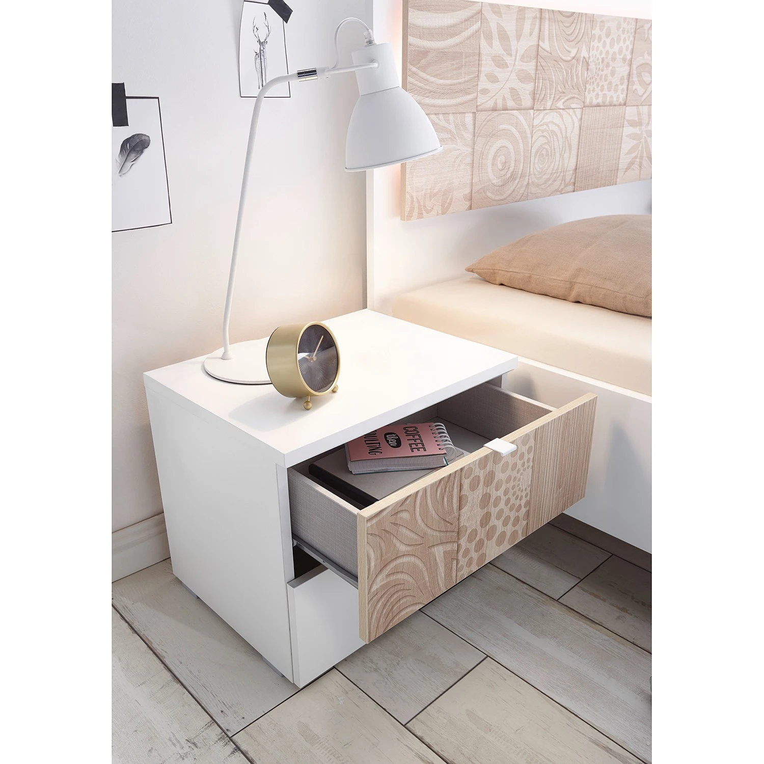 - Korpus: Weiß Holzstruktur