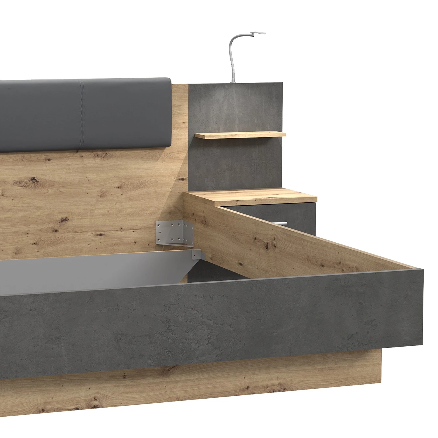 - Gestell, Rückwand und Fußteil: Artisan Eiche Dekor