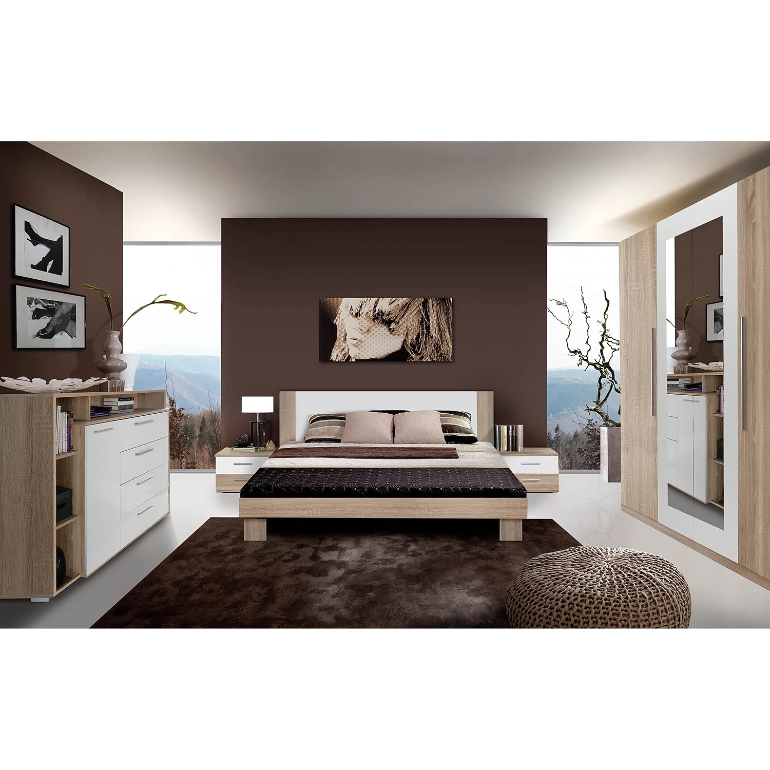 - Lieferumfang: Bettgestell ink. 2 Nachtkommoden, ohne Dekoration