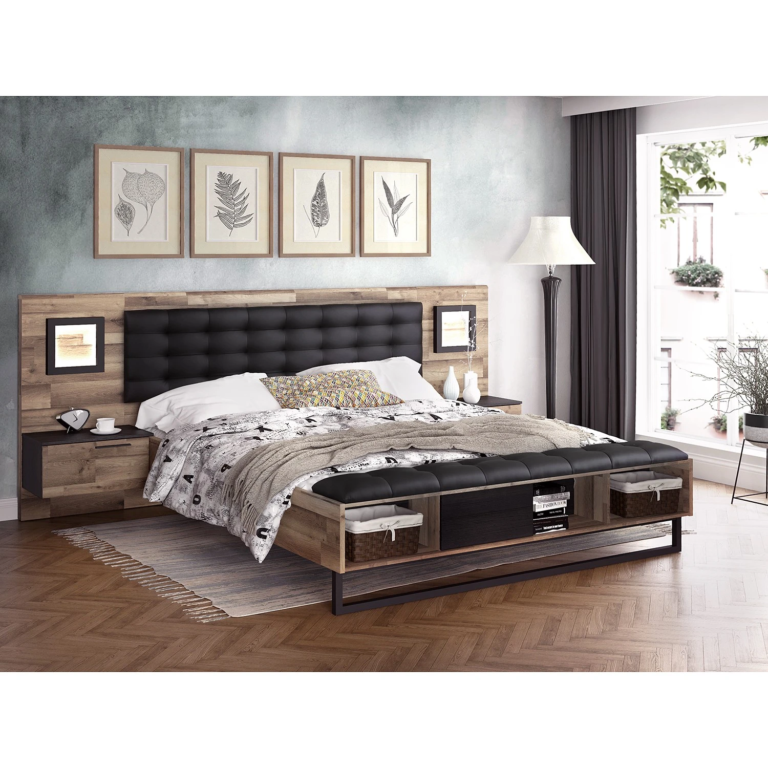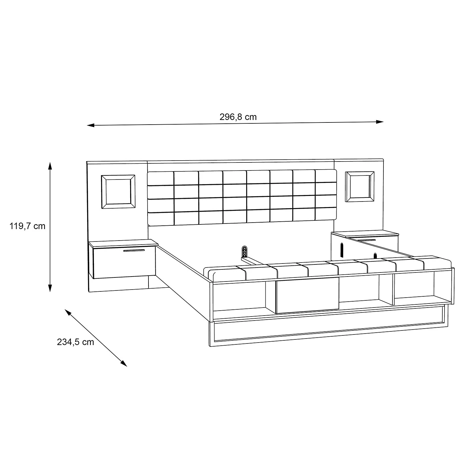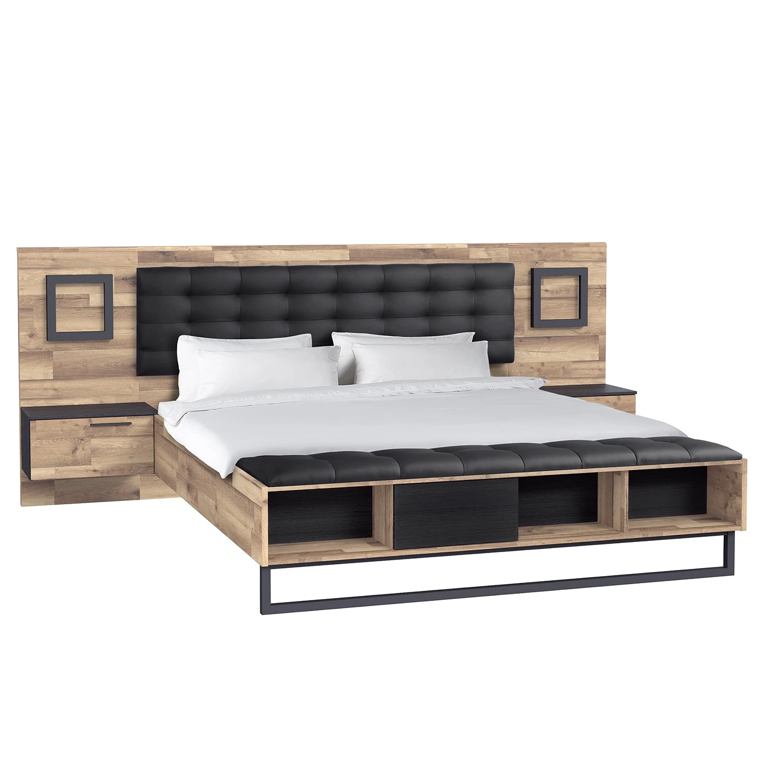 - Lieferumfang: Bettgestell inkl. 2 Nachtkommoden, ohne Dekoration