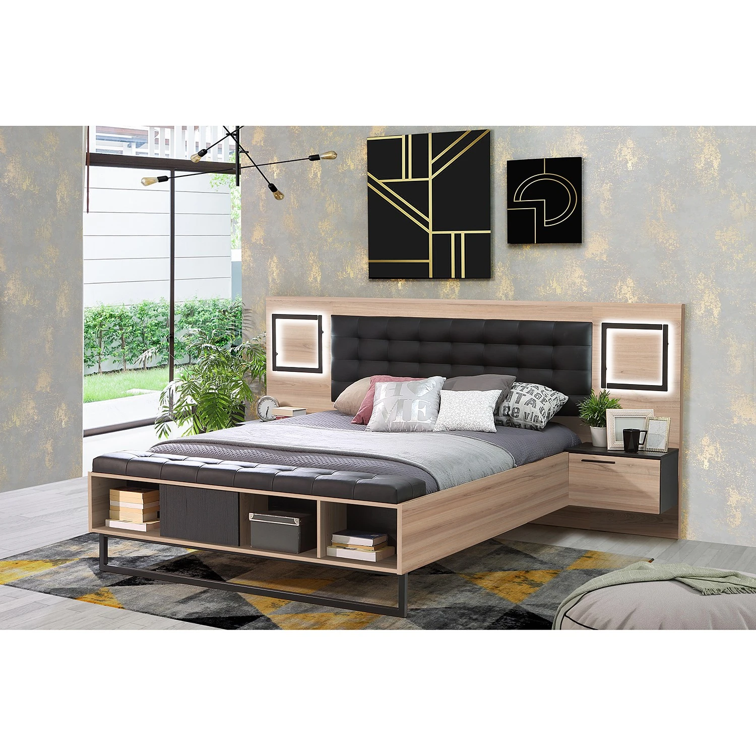 - Lieferumfang: Bettgestell inkl. 2 Nachtkommoden, ohne Dekoration