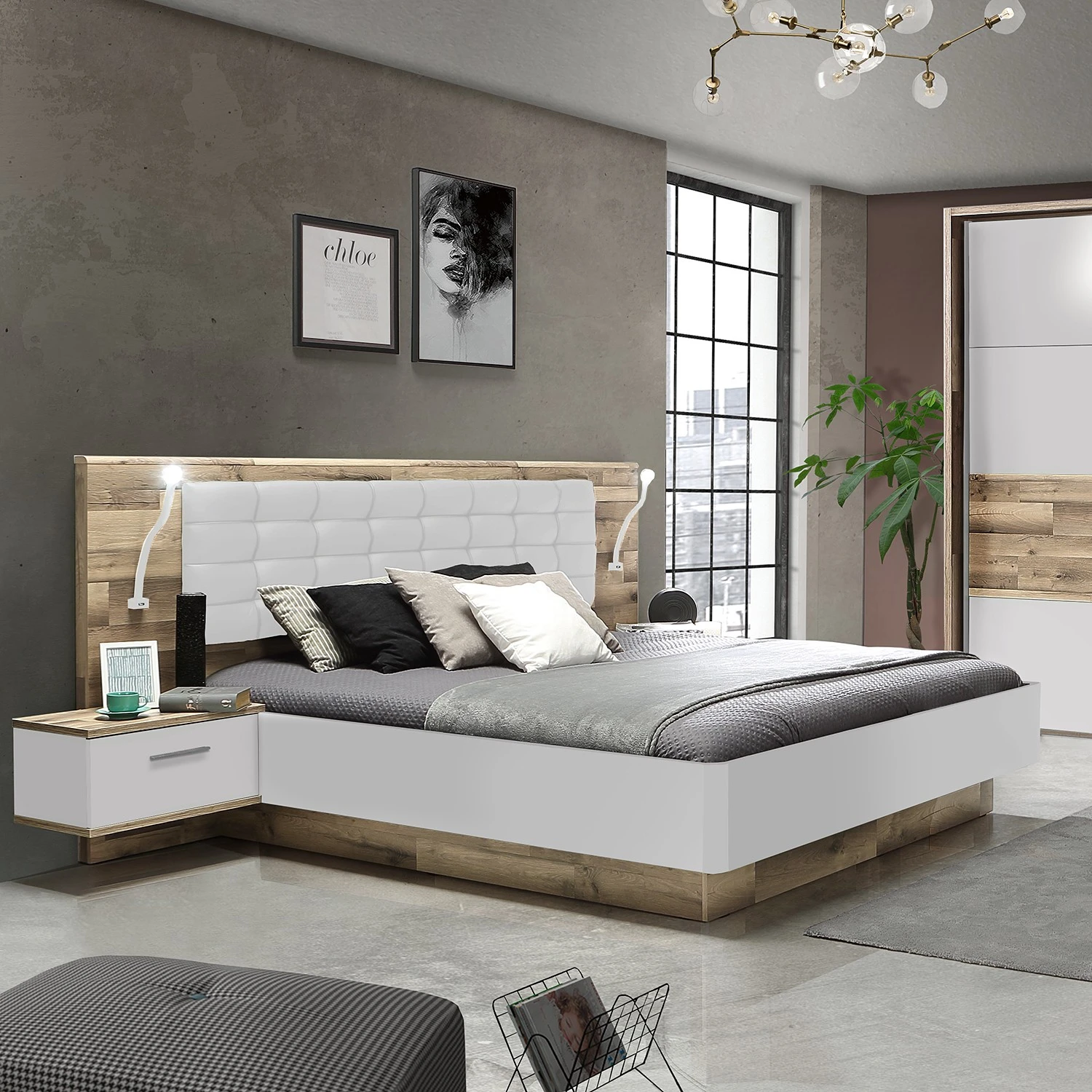 - Lieferumfang: Bettgestell inkl. 2 Nachtkommoden, ohne Dekoration