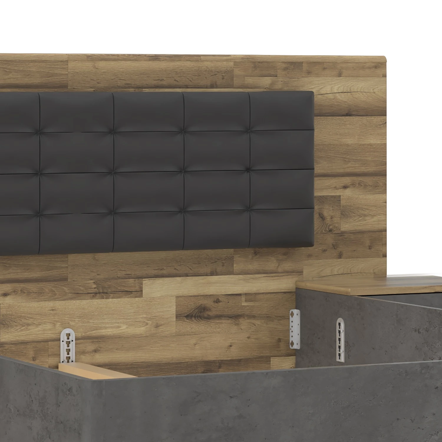 - Korpus: Betonoptik Dunkelgrau, Absetzung Stabeiche Dekor