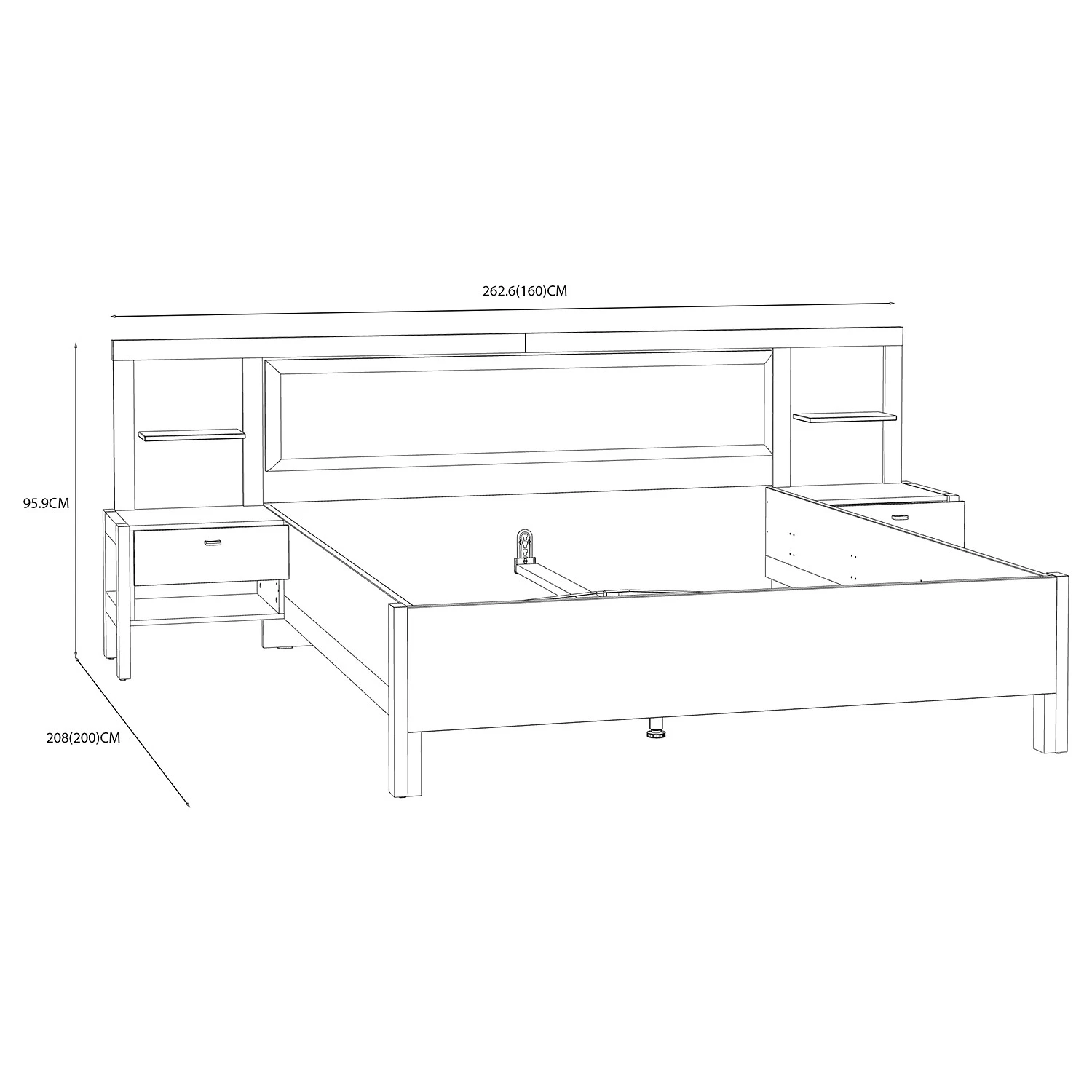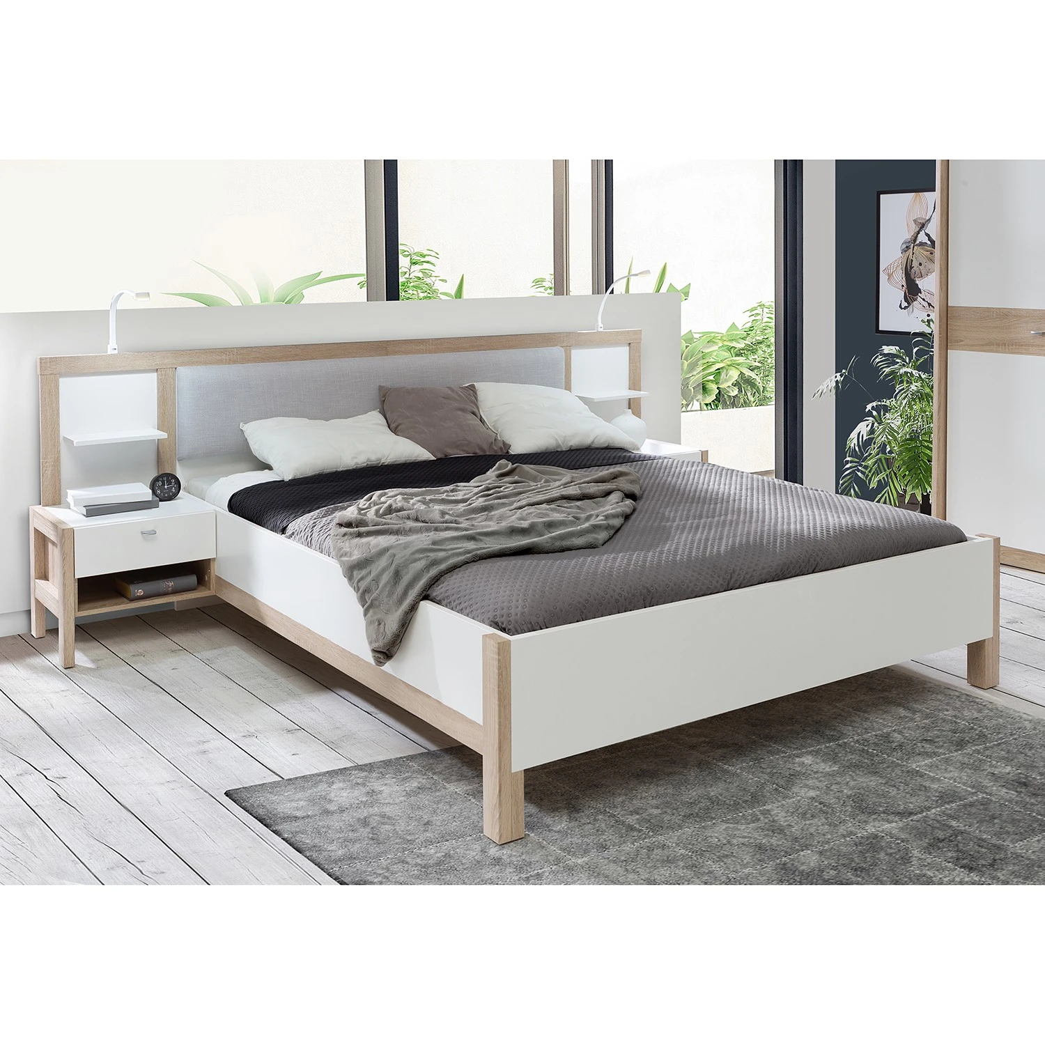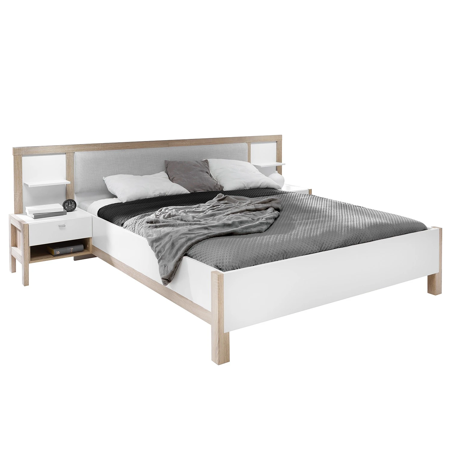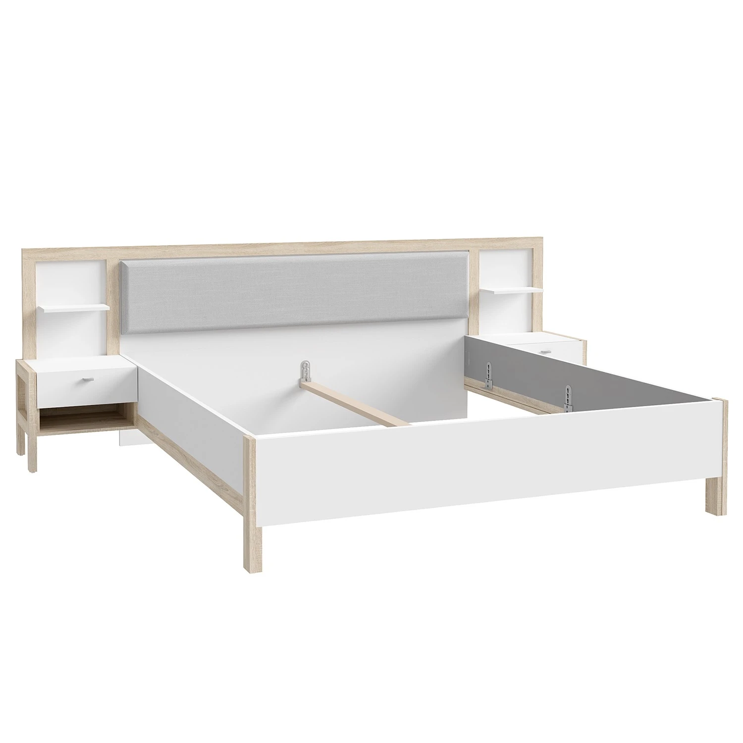 - Lieferumfang: Bettgestell inkl. 2 Nachtkommoden, ohne Dekoration