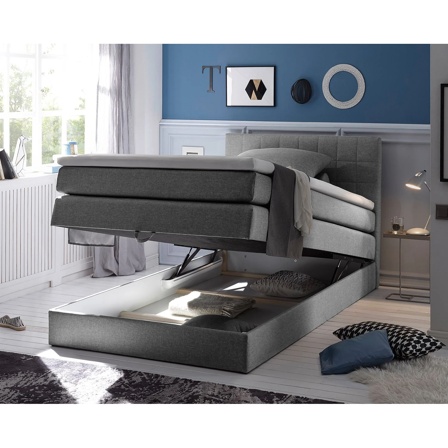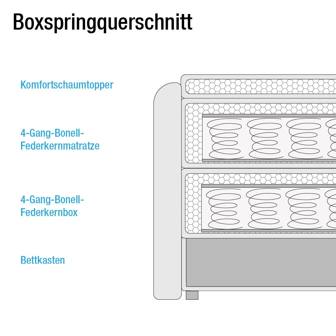 - Lieferumfang: Boxspringbett inkl. Topper & Bettkasten