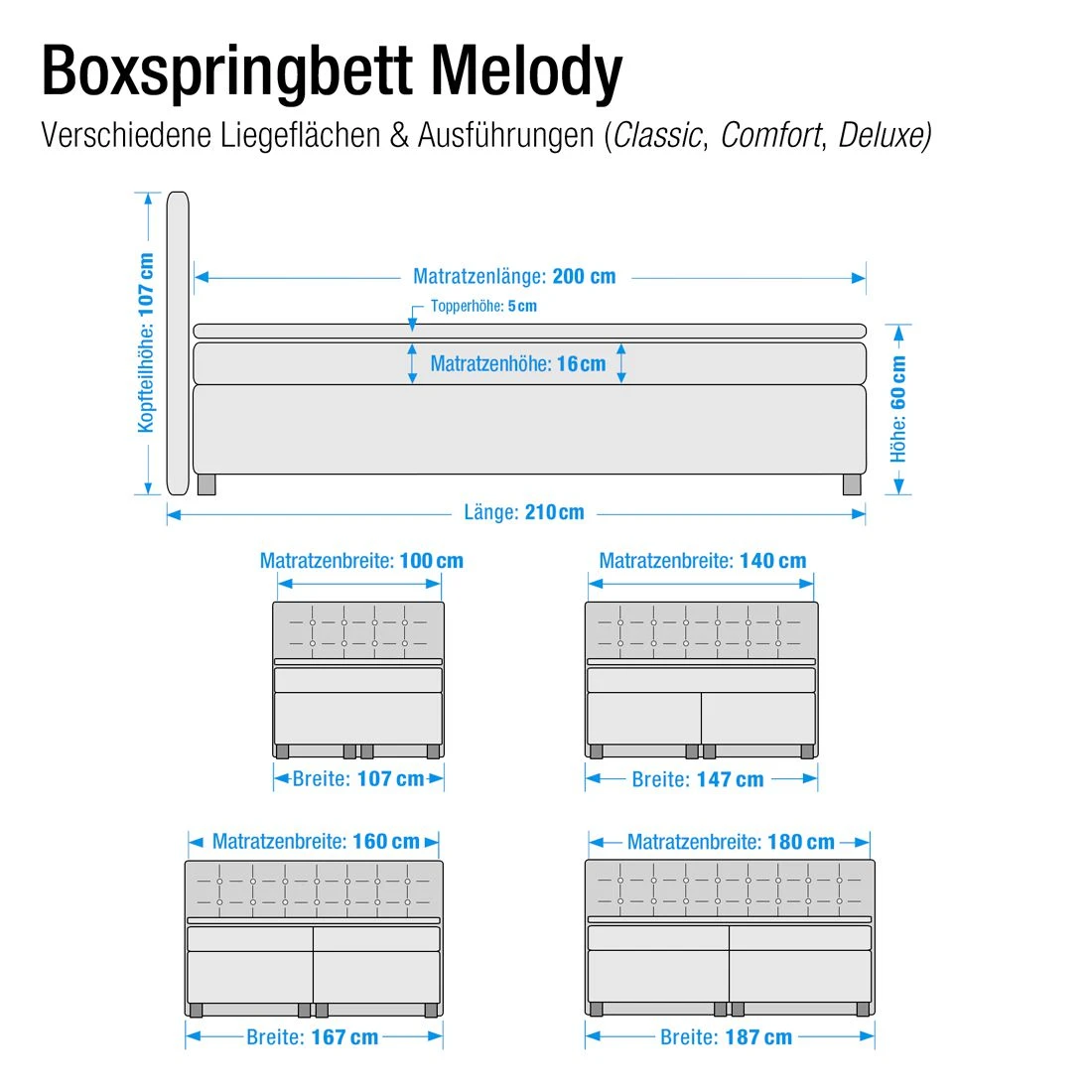 - Optional mit oder ohne Topper erhältlich