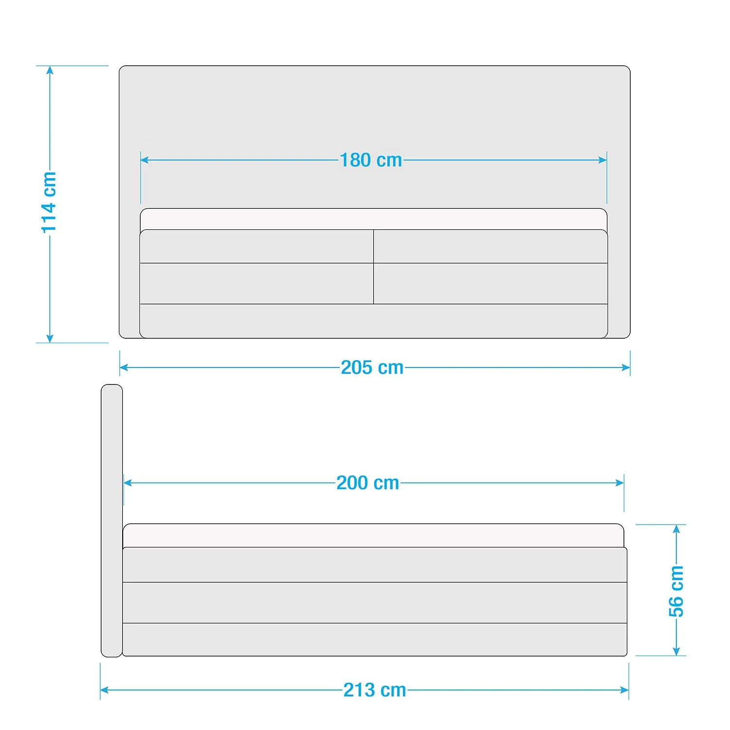 - Lieferumfang: Bett inkl. Bettkasten, Kopfteil, Matratzen & Topper, ohne Dekoration