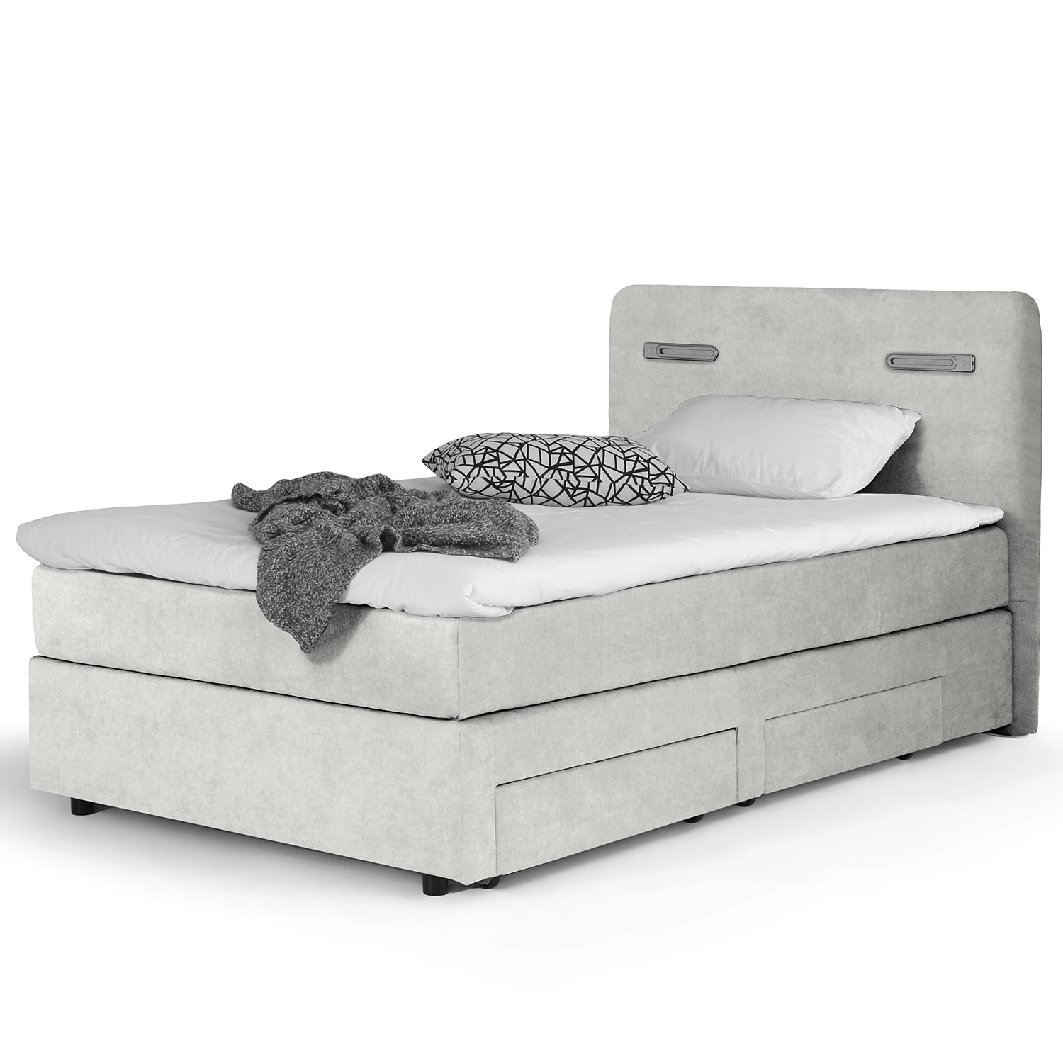 - Lieferumfang: Boxspringbett inkl. Topper, Beleuchtung und Schublade davorstehend rechts