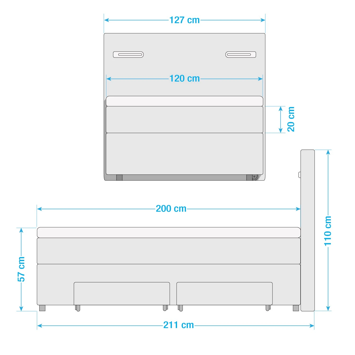 - Bettkantenhöhe: 57 cm