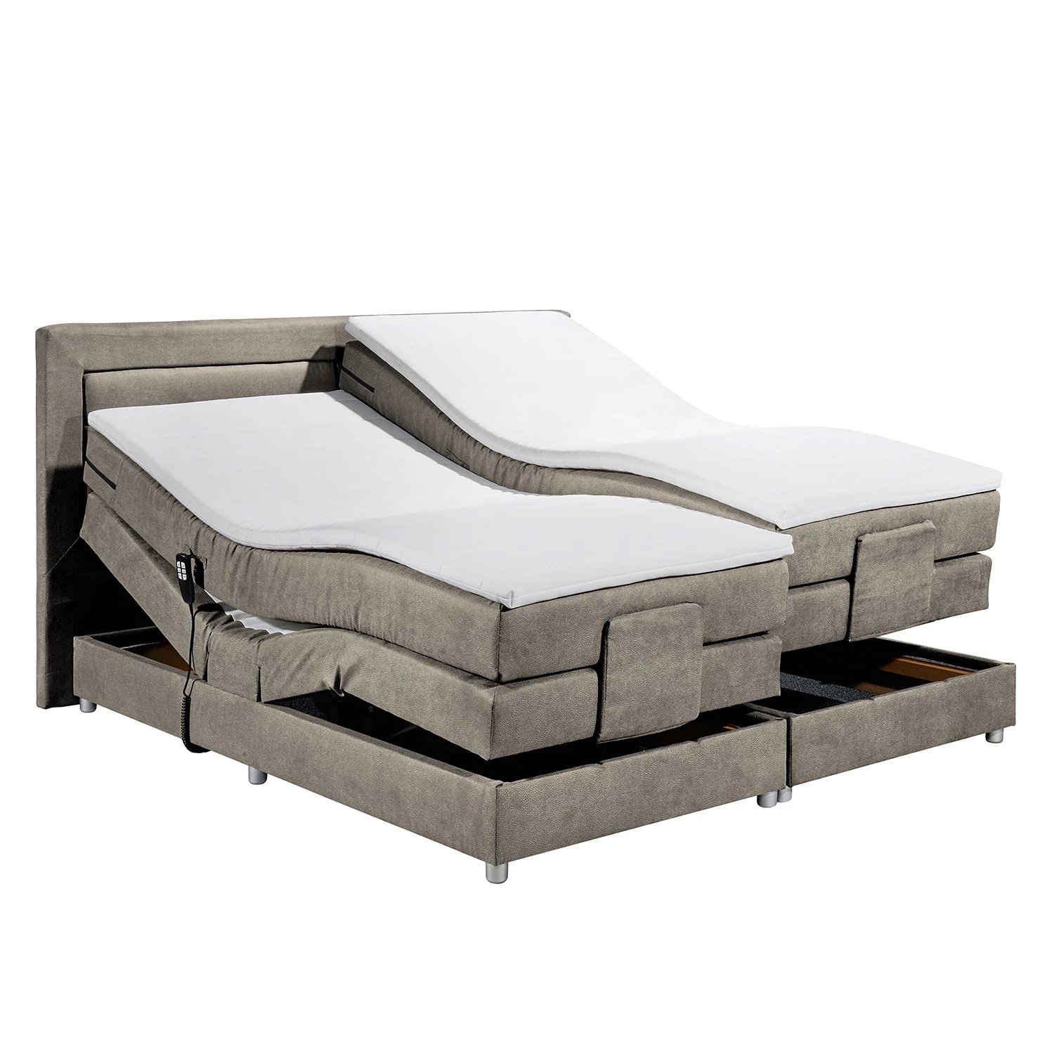 - Lieferumfang: Boxspringbett inkl. Motor, Fernbedienung und Topper