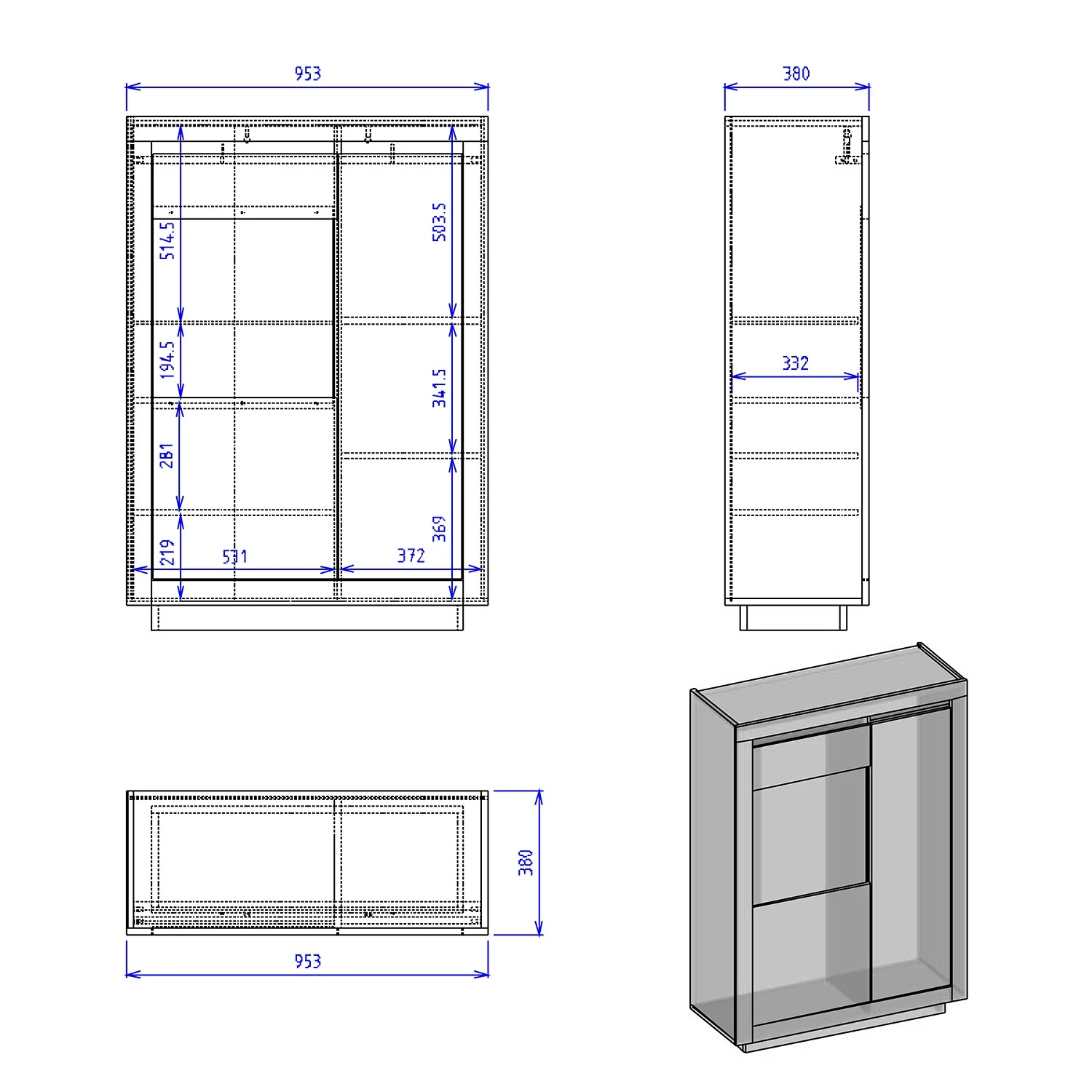 - Lieferumfang: Highboard ohne Beleuchtung & Dekoration