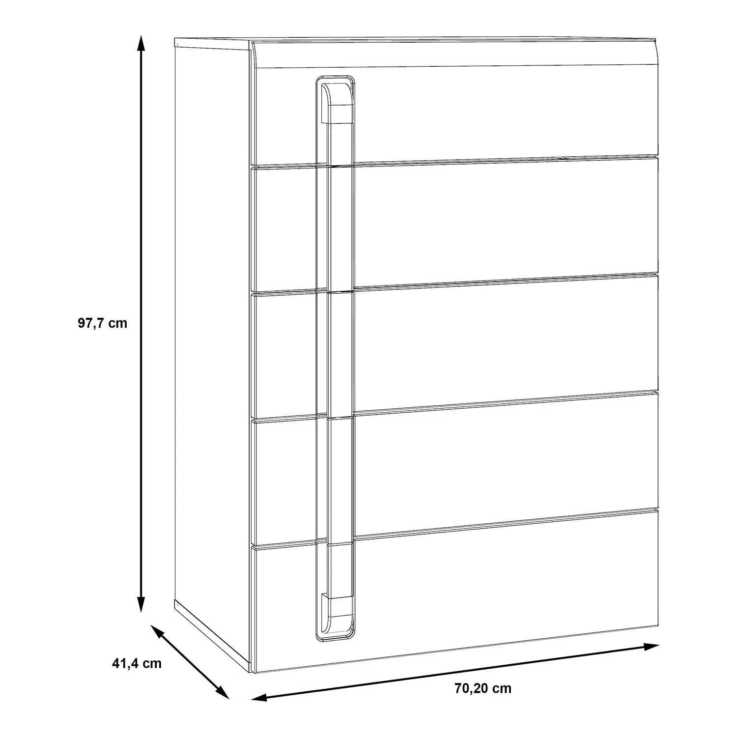 - Weitere Qualitätsmerkmale: Schubladen max. Belastung bis je 3 kg, Max Belastbarkeit bis 10 kg, Stabile Konstruktion aus Spanplatte, Pflegeleichte Oberfläche