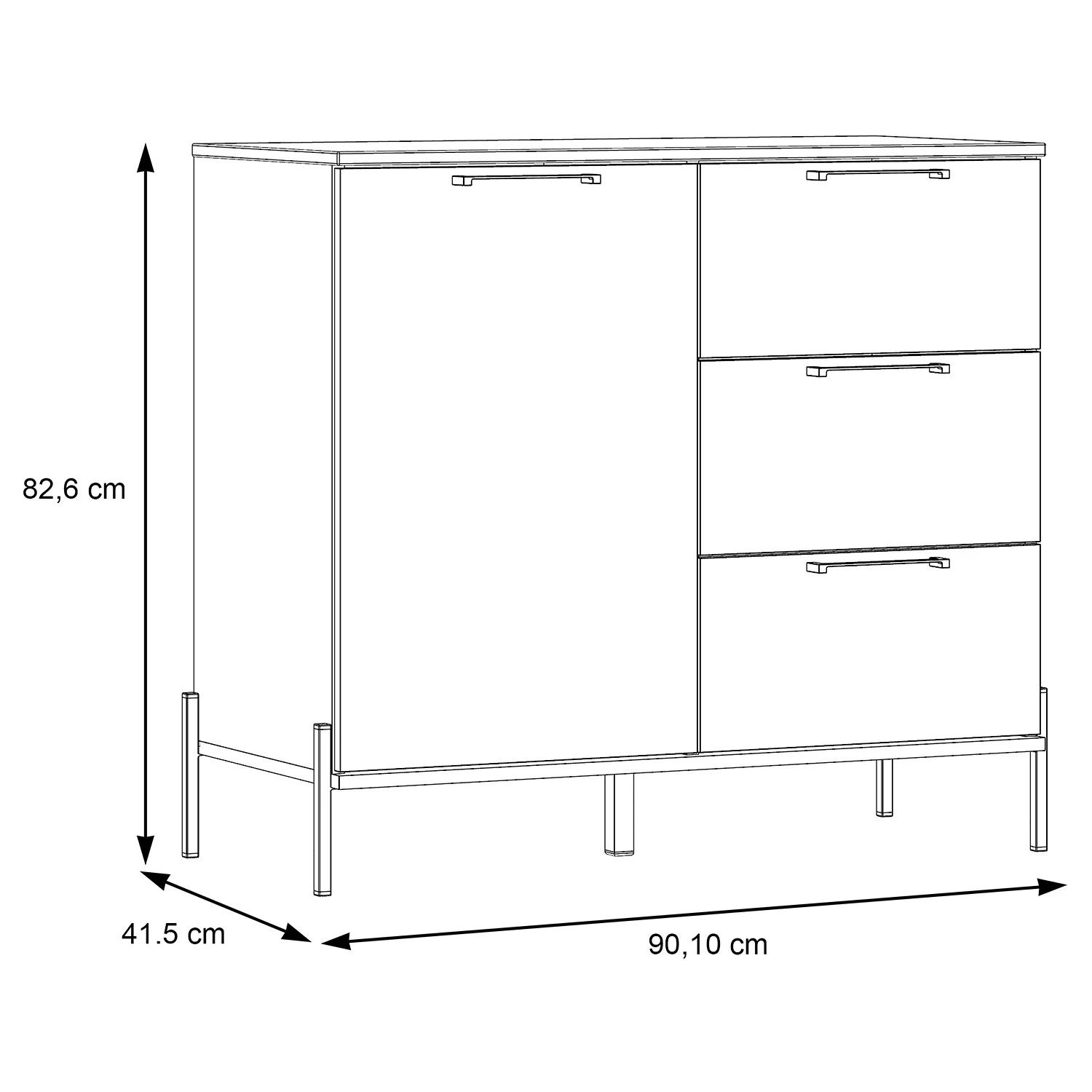 - Innenmaße Schubladen: je 39 x 13 x 30 cm (BxHxT)