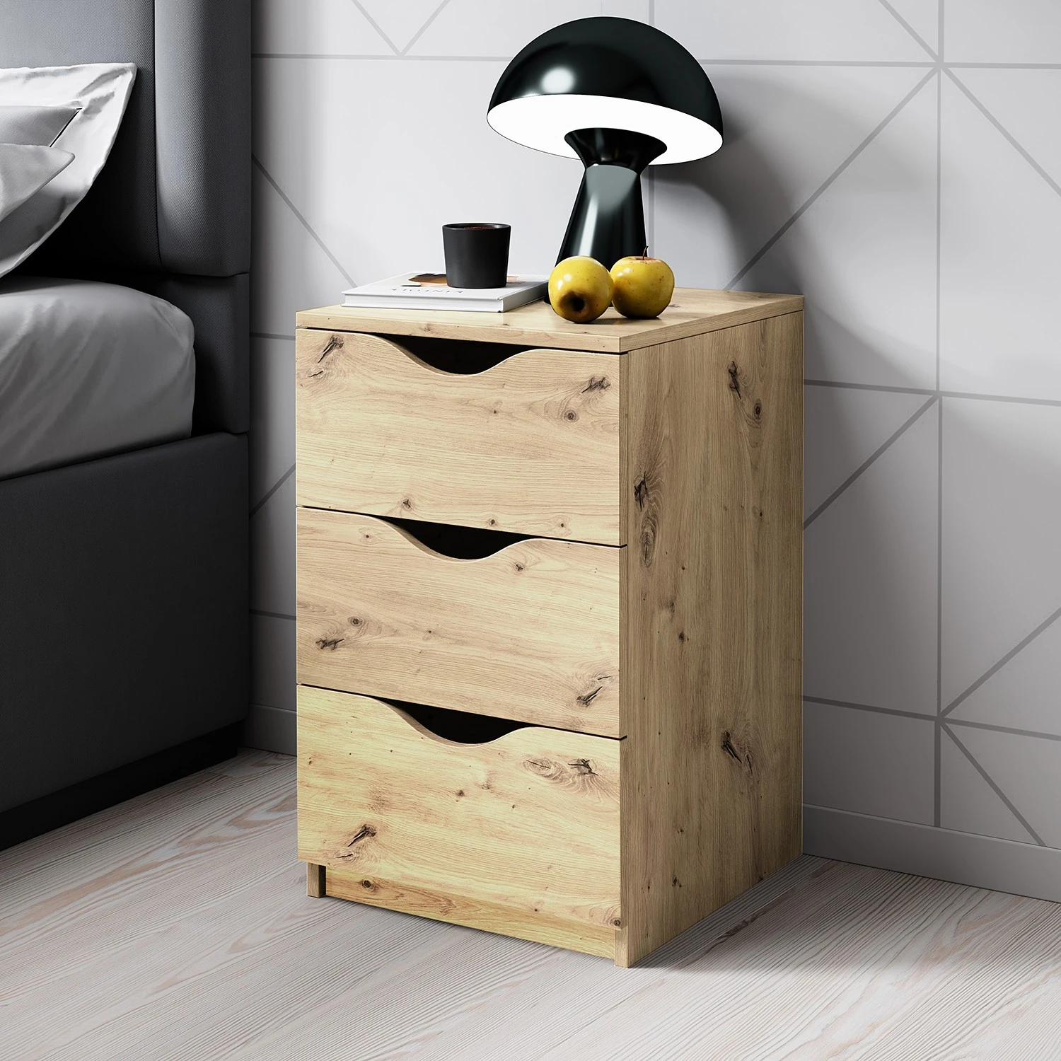 - Lieferumfang: Nachtkommode mit 3 Schubkästen