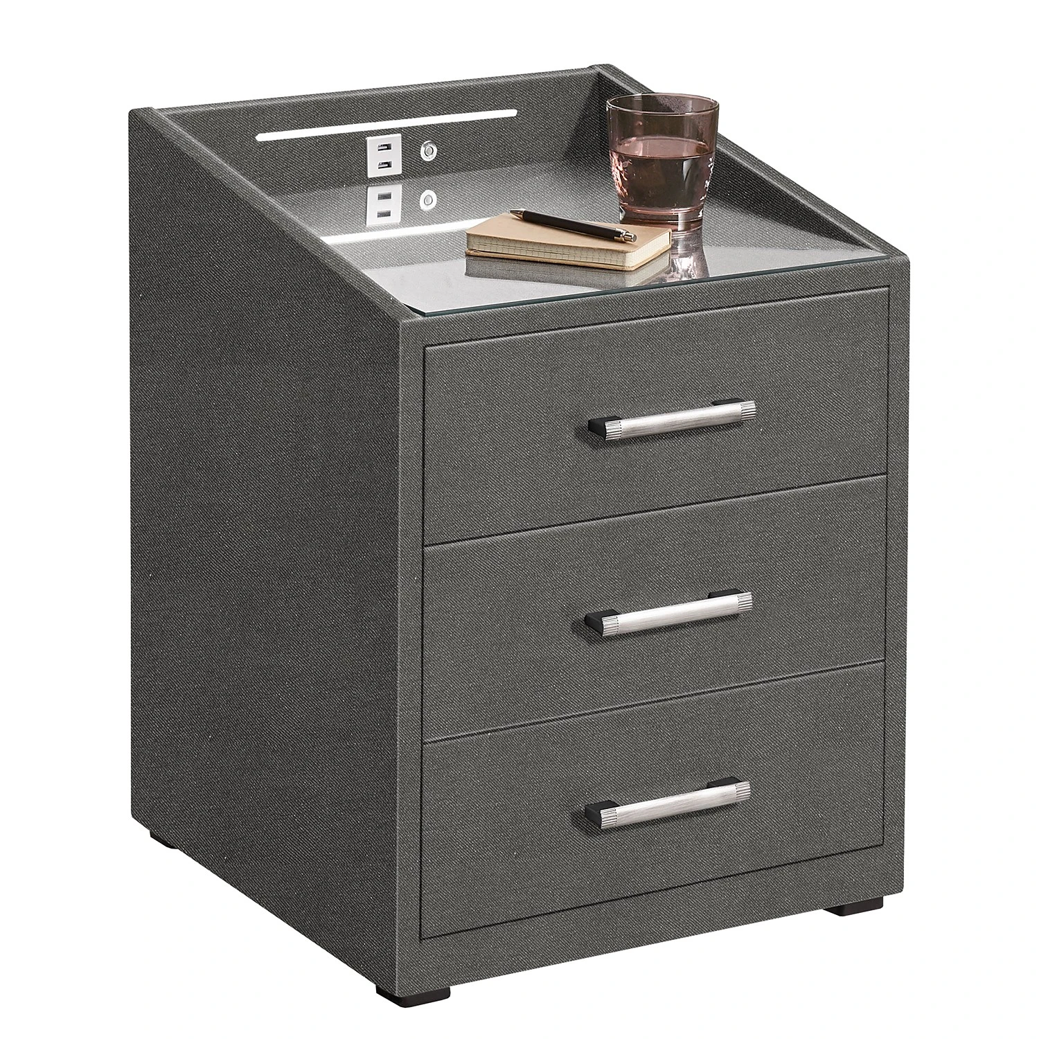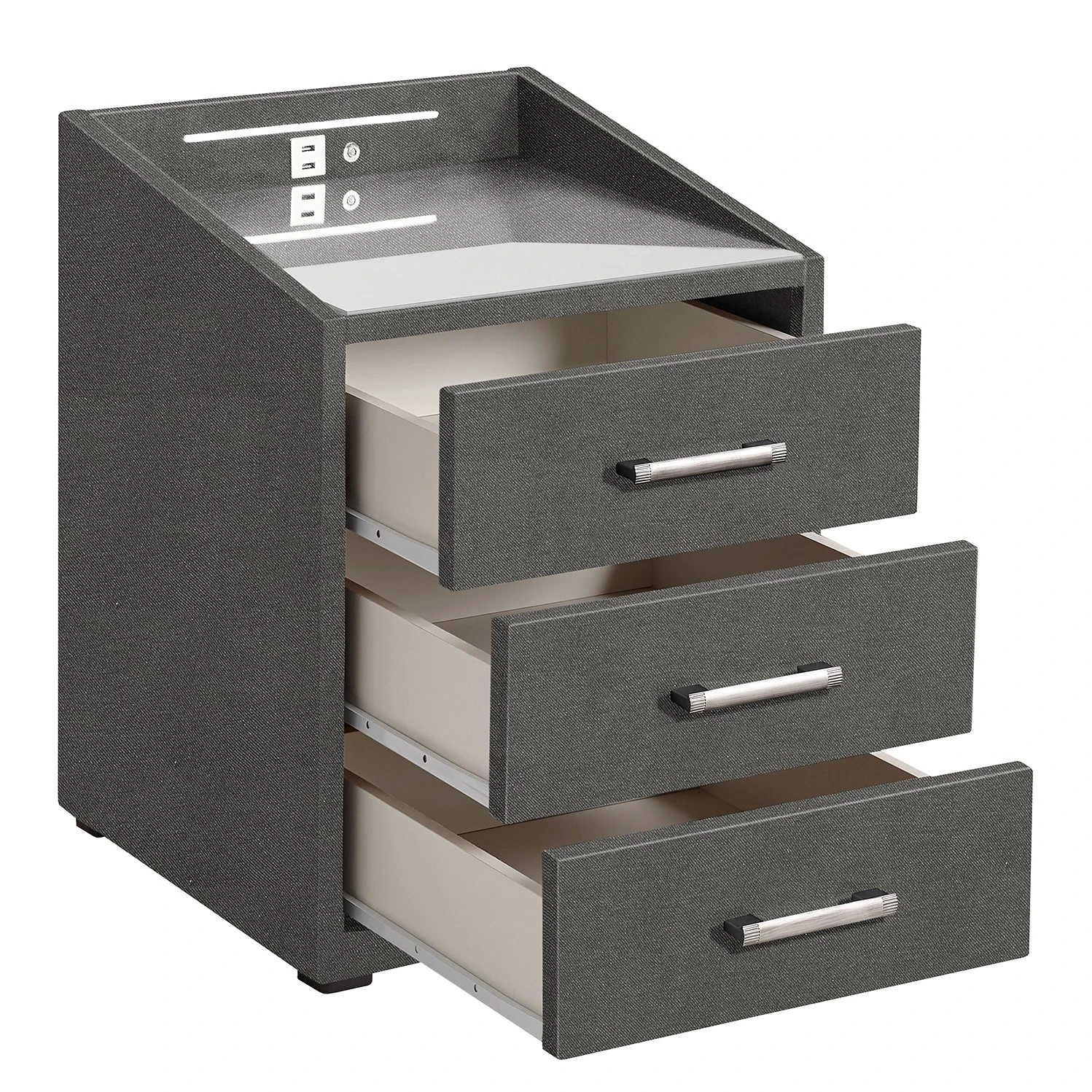 - Lieferumfang: Nachtkommode inkl. LED-Beleuchtung und USB-Anschluss, ohne Dekoration