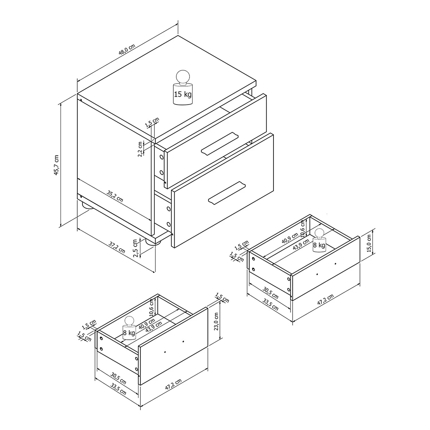 - Anzahl Schubladen: 2