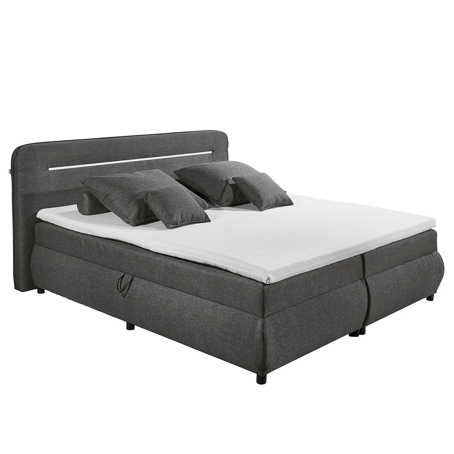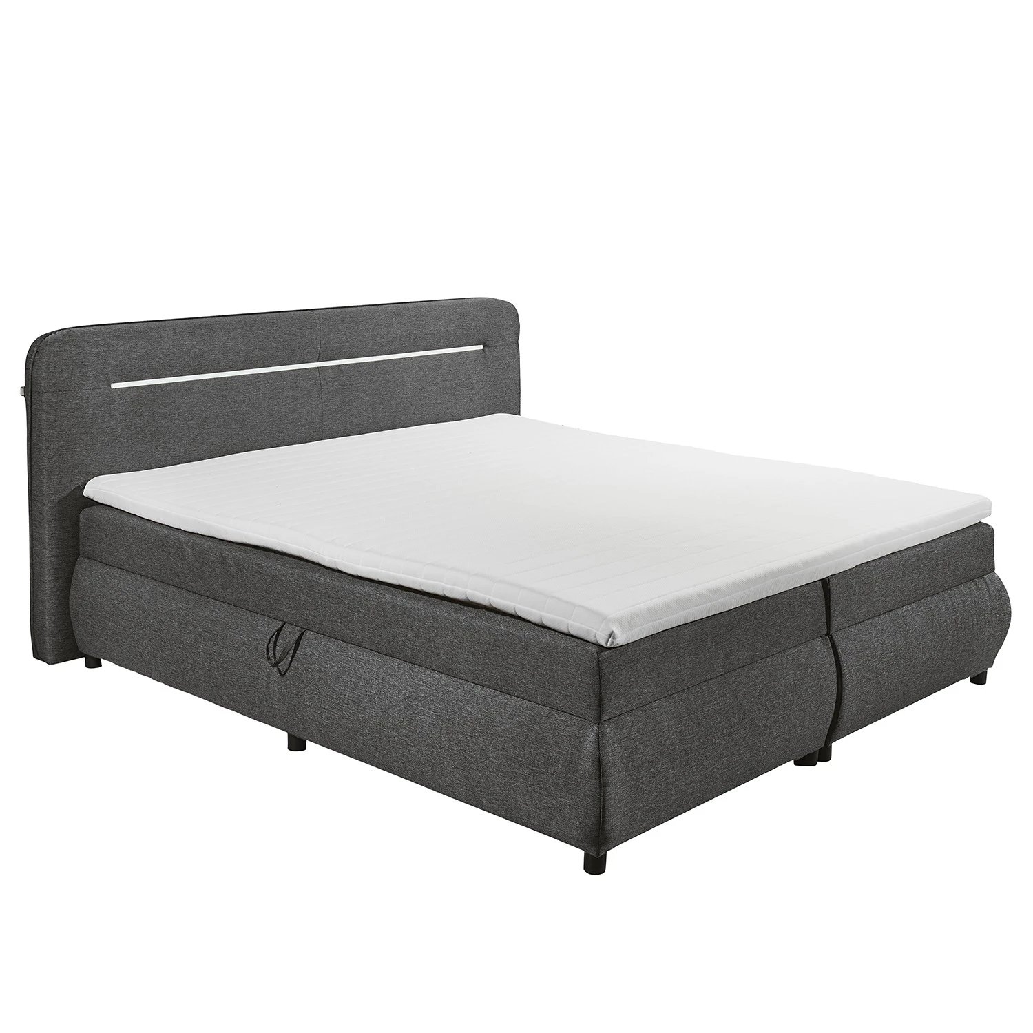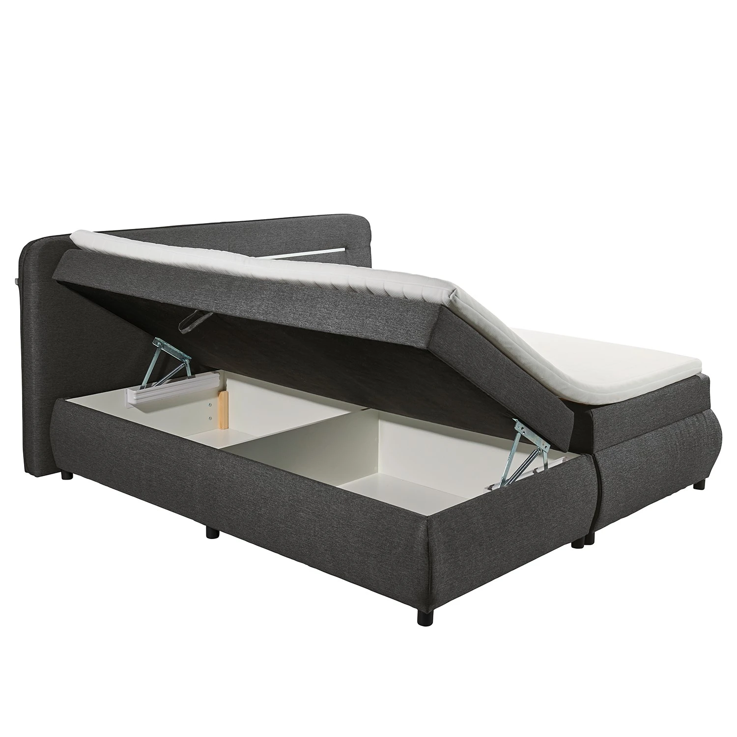 - Lieferumfang: Bett inkl. Kopfteil, Topper, Bettkasten & LED-Beleuchtung, ohne Dekoration