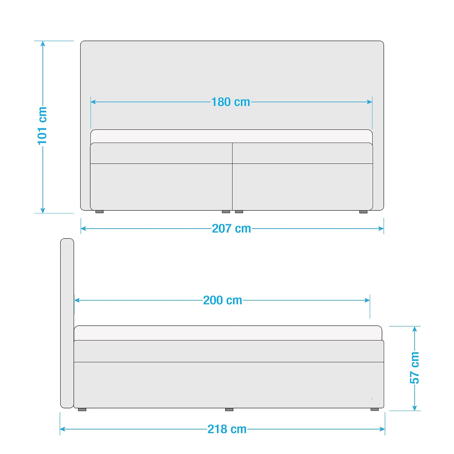 - Bettkantenhöhe: 57 cm