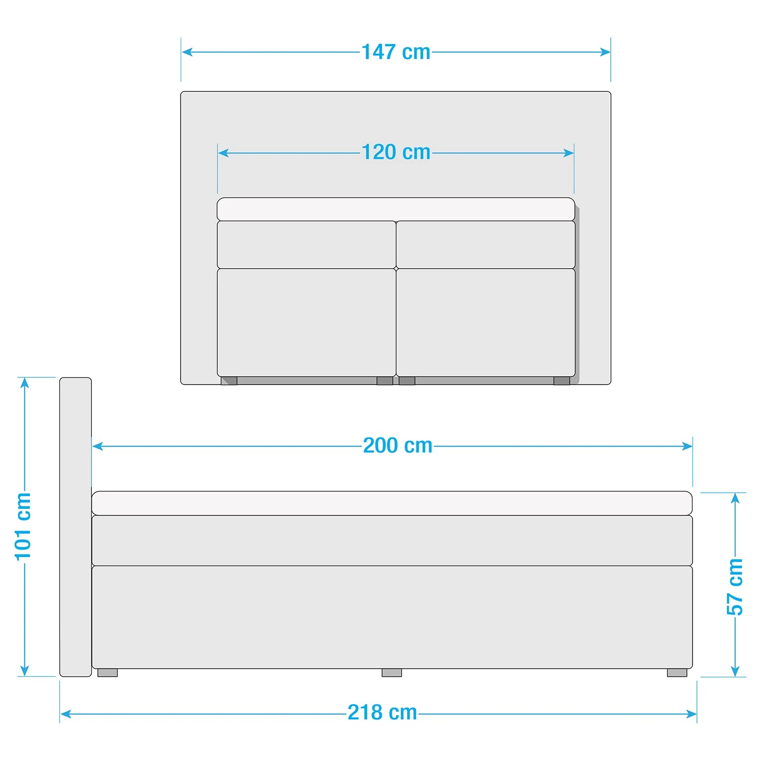 - Bettkantenhöhe: 57 cm
