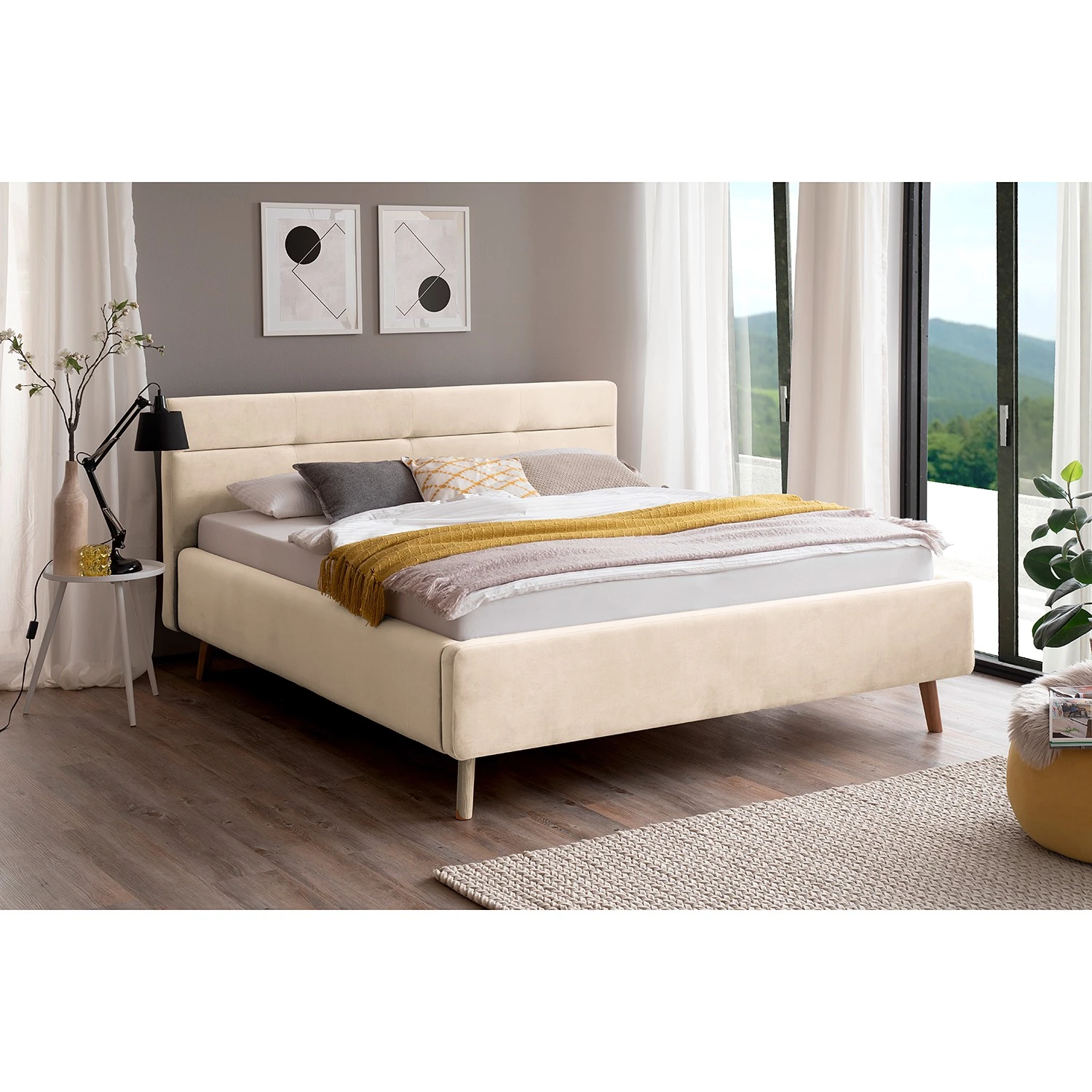 - Lieferumfang: Polsterbett inkl. Kopfteil und Lattenrost, ohne Matratze & Dekoration