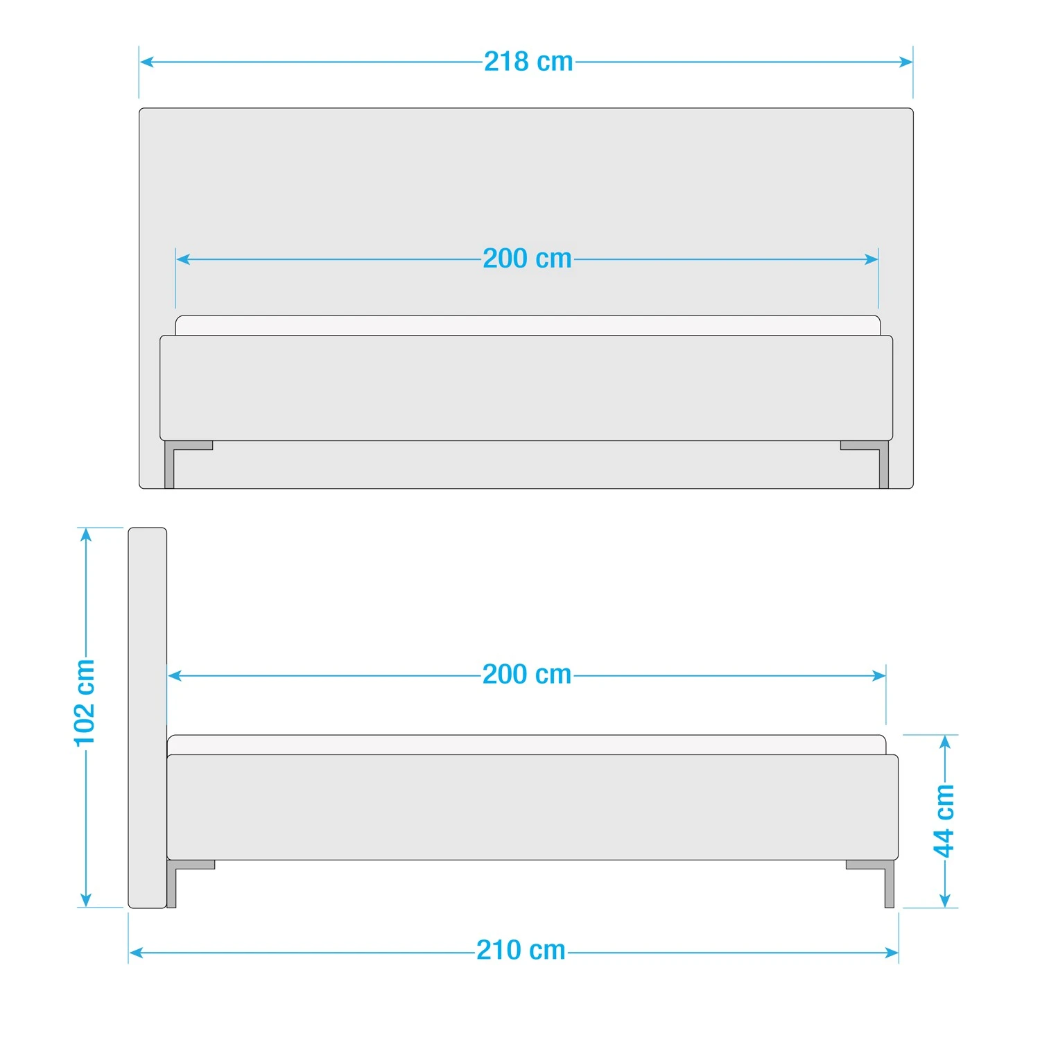- Liegehöhe: 44 cm