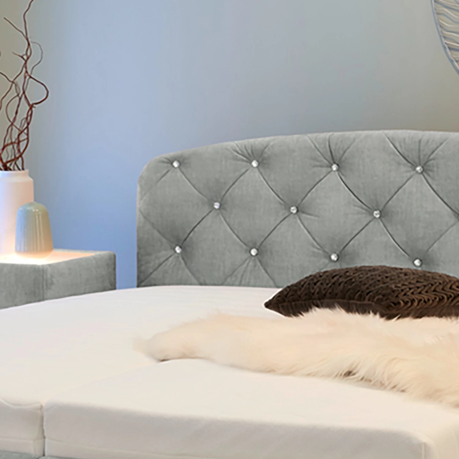 - Lieferumfang: Polsterbett inkl. Kopfteil und Matratze ohne Dekoration