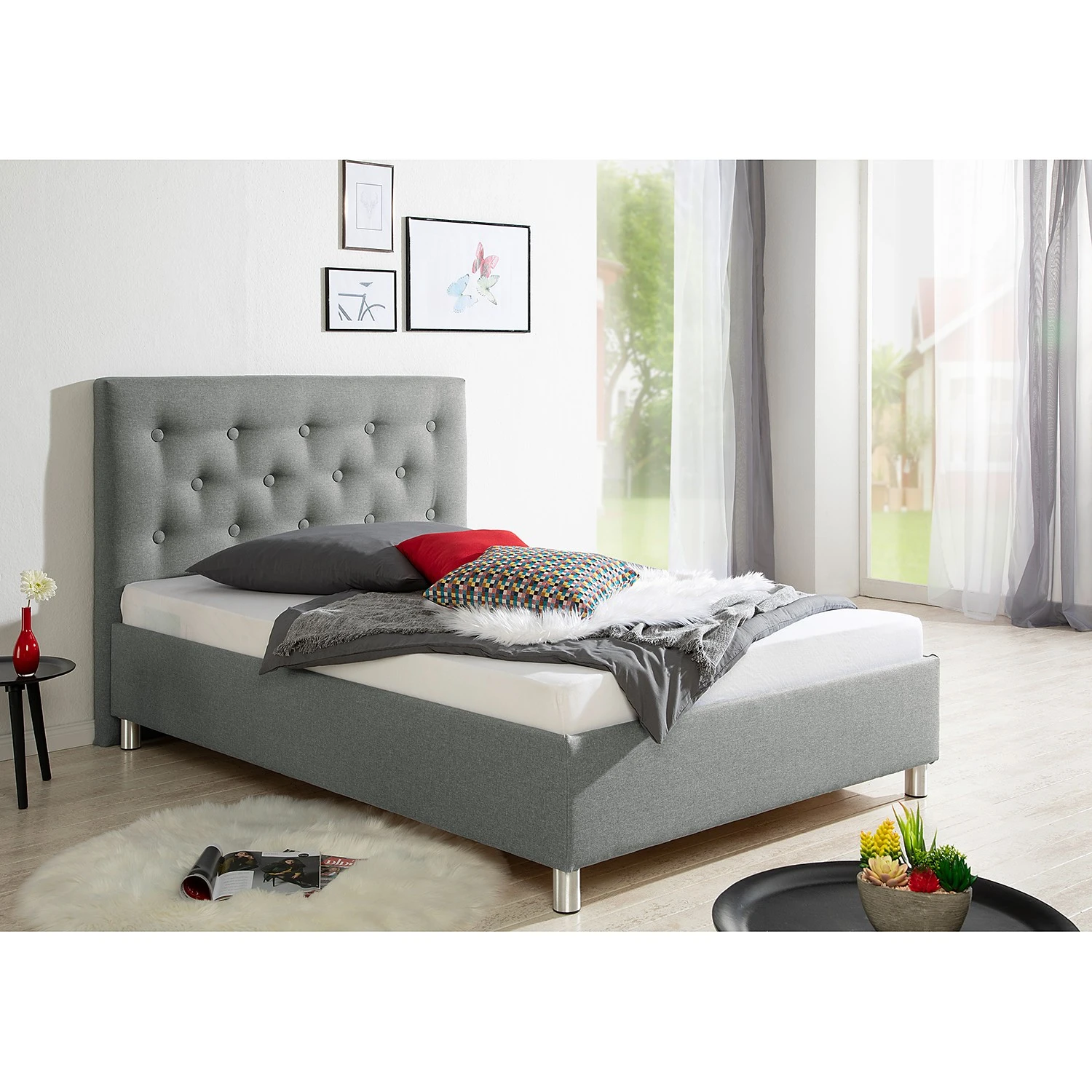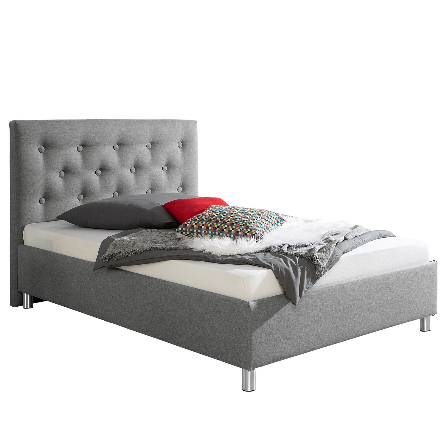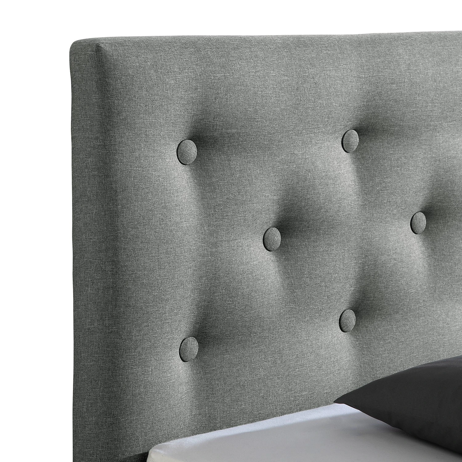 - Weitere Qualitätsmerkmale: Bettgestell mit Kopfteil (gerade gepolstert mit großen Knöpfen). Bettkasten inkl. Bodenplatte