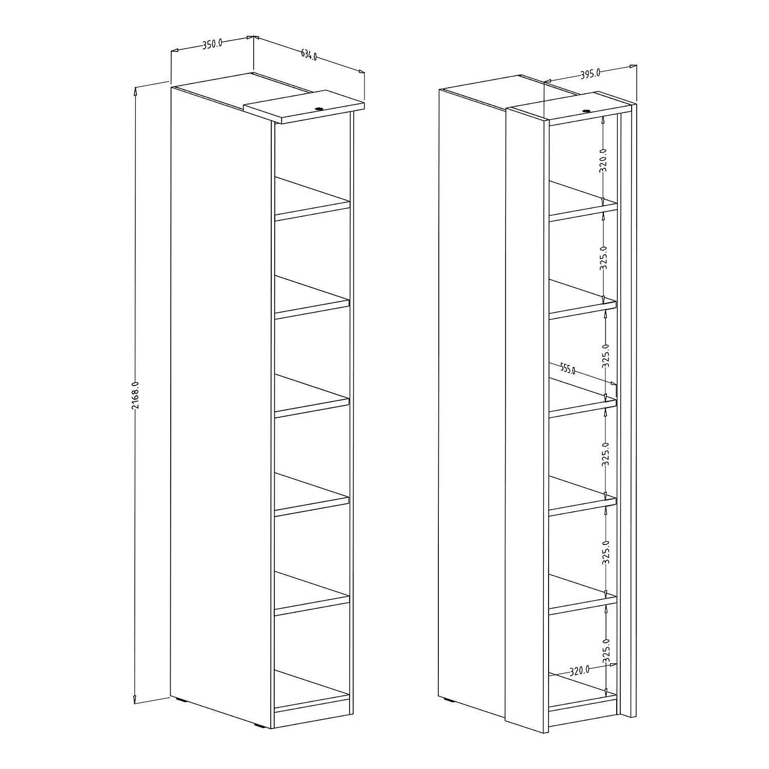 - Anzahl feste Fachböden: 2 Fachböden