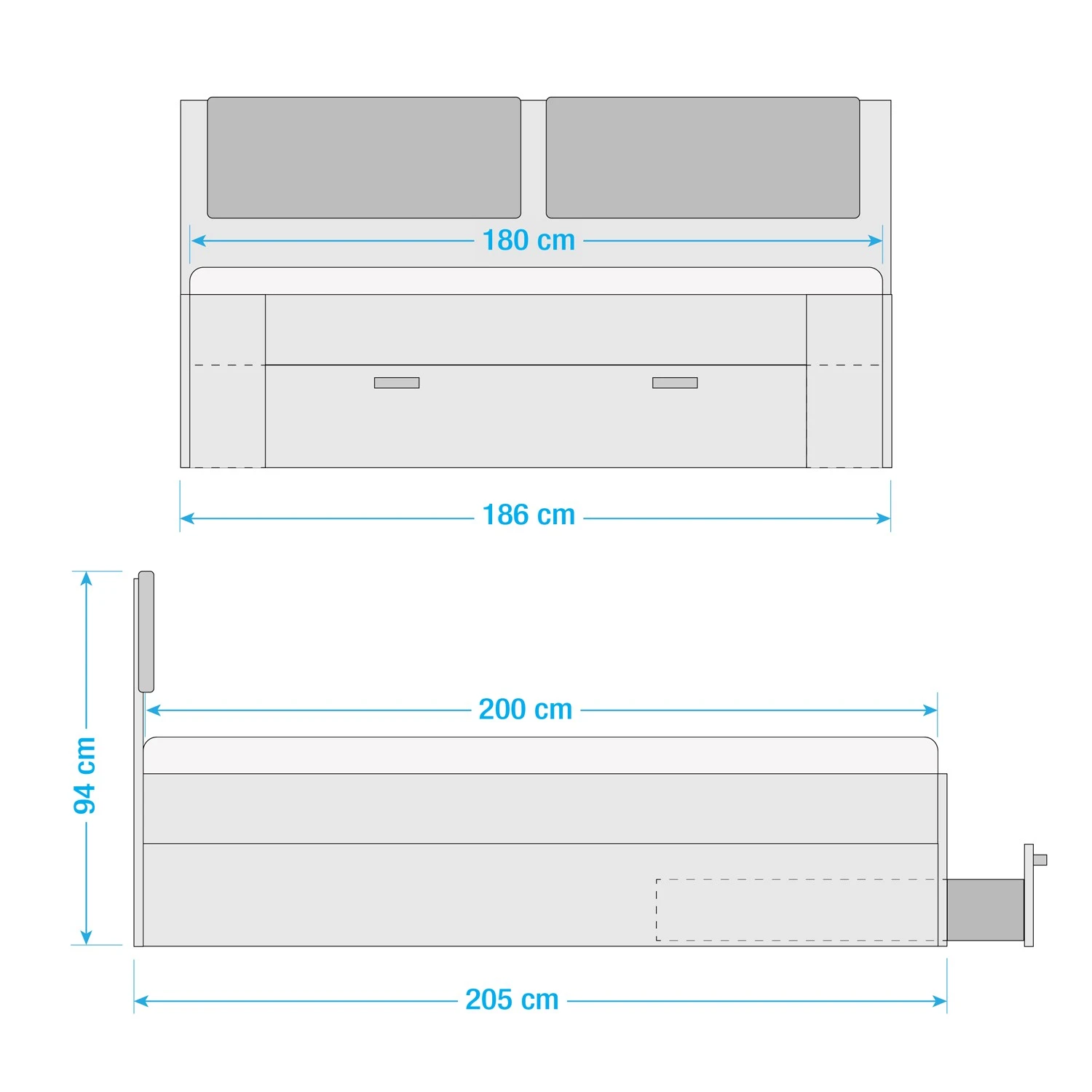 - Bett:186x94x205cm (BxHxT)