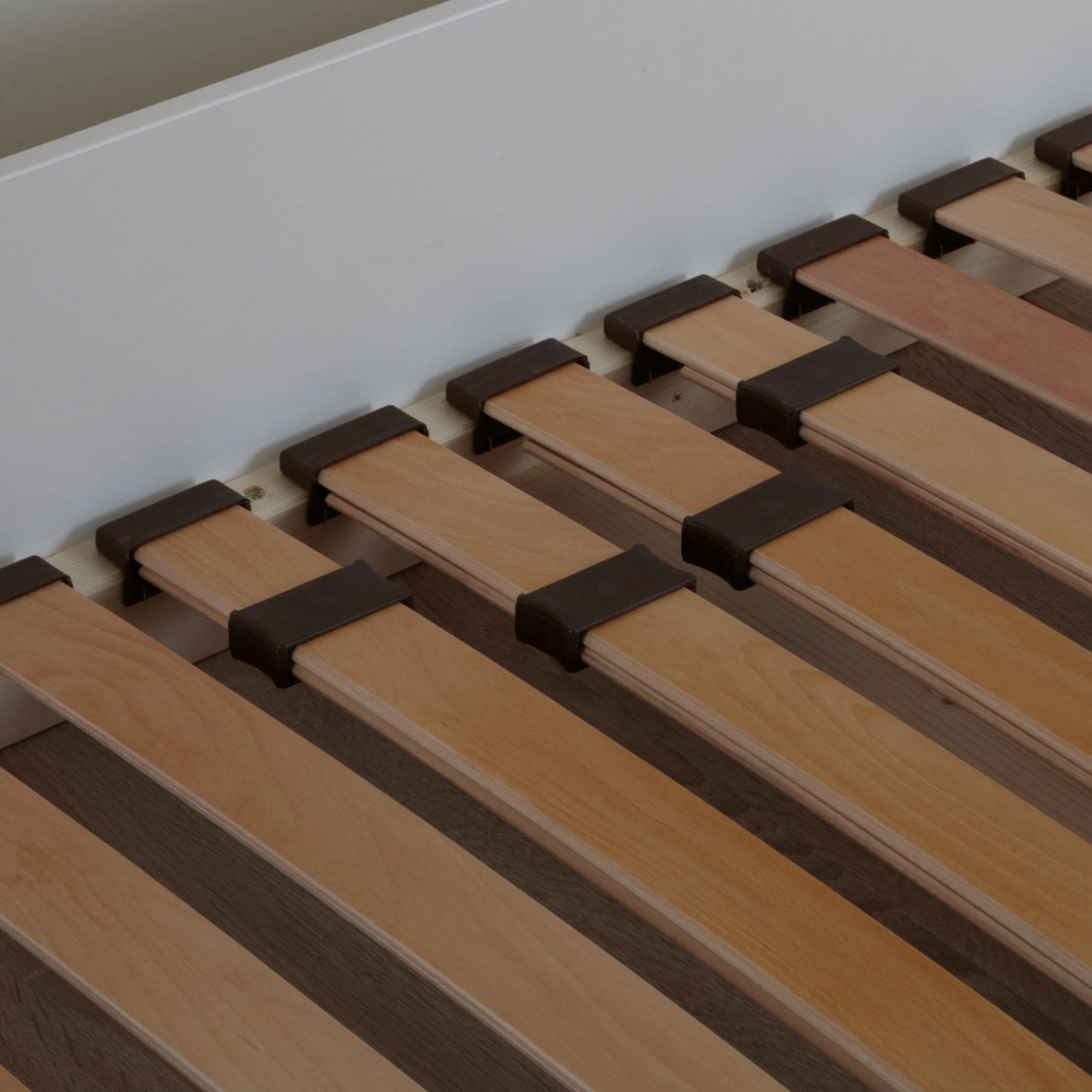 Mit einer Liegefläche von 90 x 200 cm passt dieses weiße Gästebett des Trendlabels Fredriks auch in kleinere Zimmer problemlos. Daher ist es für Einzelpersonen eine gute Wahl. Hervorragend kombinieren lässt sich dieses Bett von Fredriks beispielsweise mit einer Nachtkommode im modernen Stil.