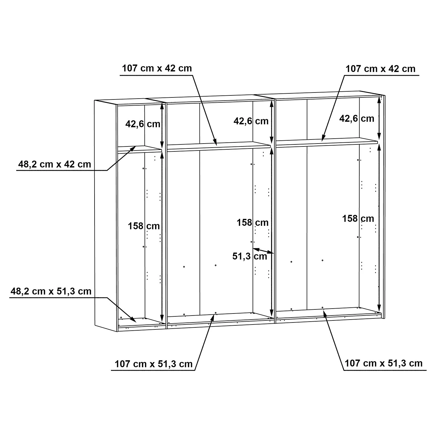 - Anzahl feste Fachböden: 3 Fachböden