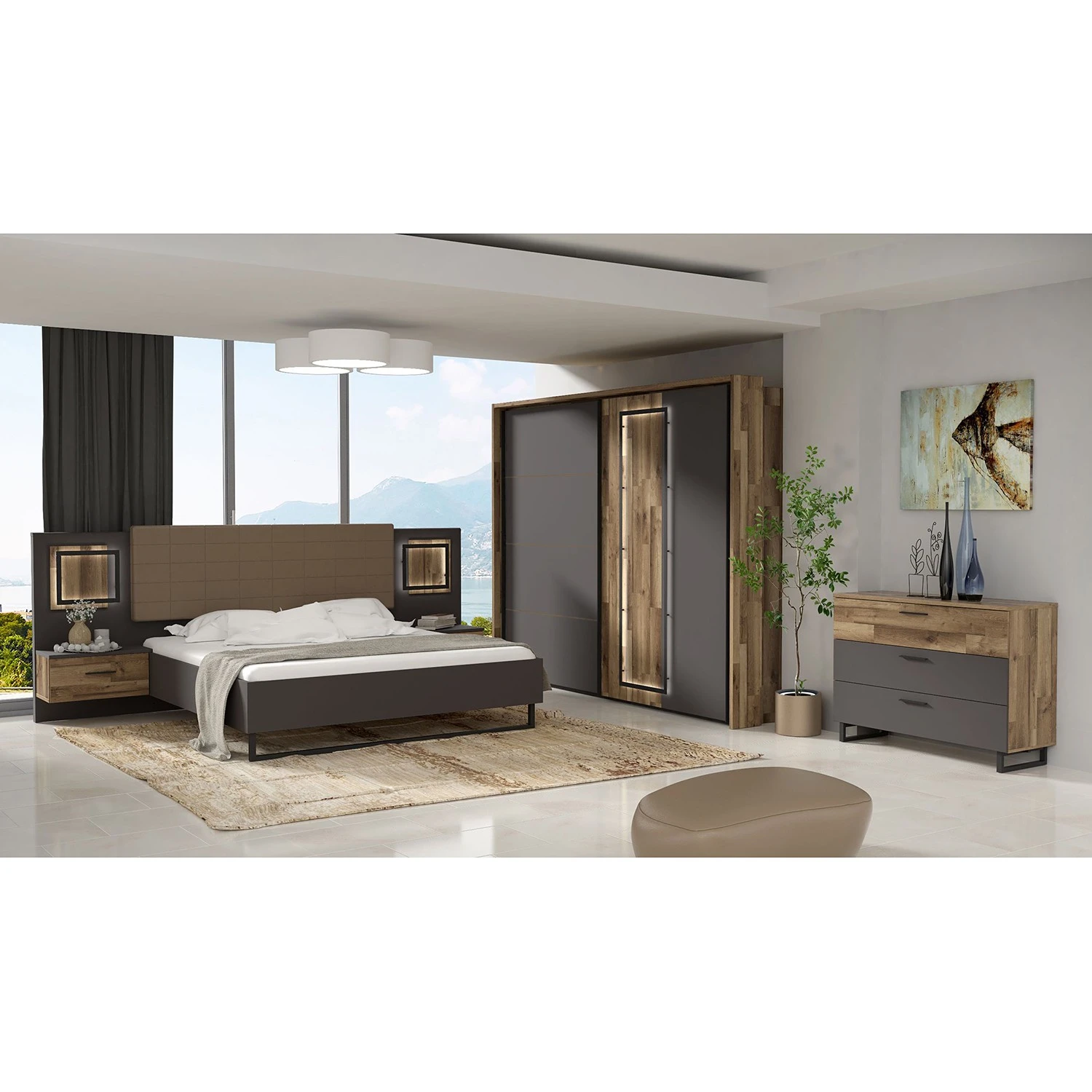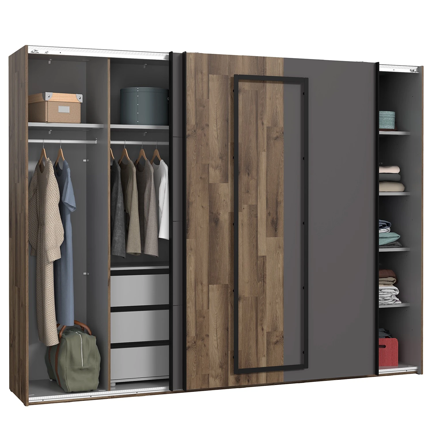 - Lieferumfang: Schwebetürenschrank ohne Dekoration