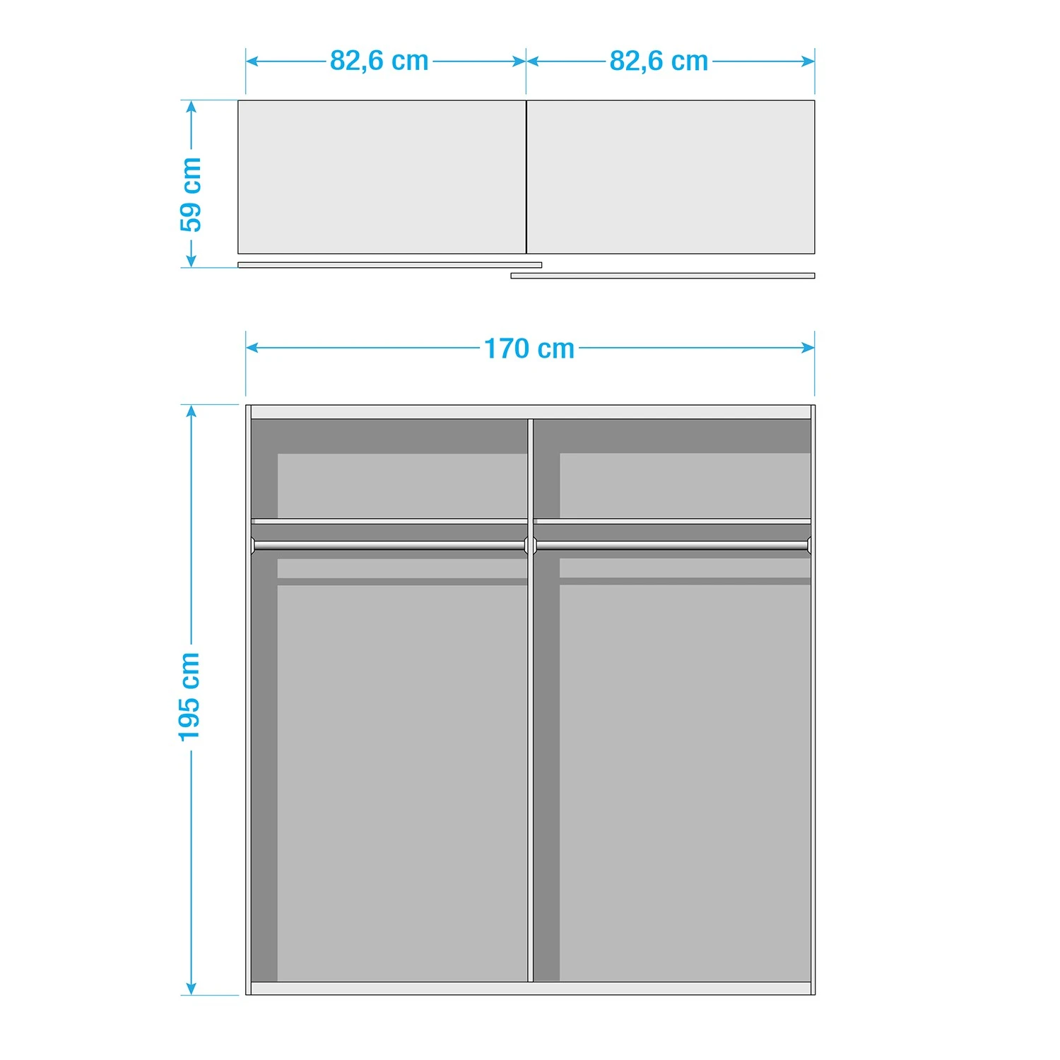 - Lieferumfang: Schwebetürenschrank, 2 Einlegeböden und 2 Kleiderstangen