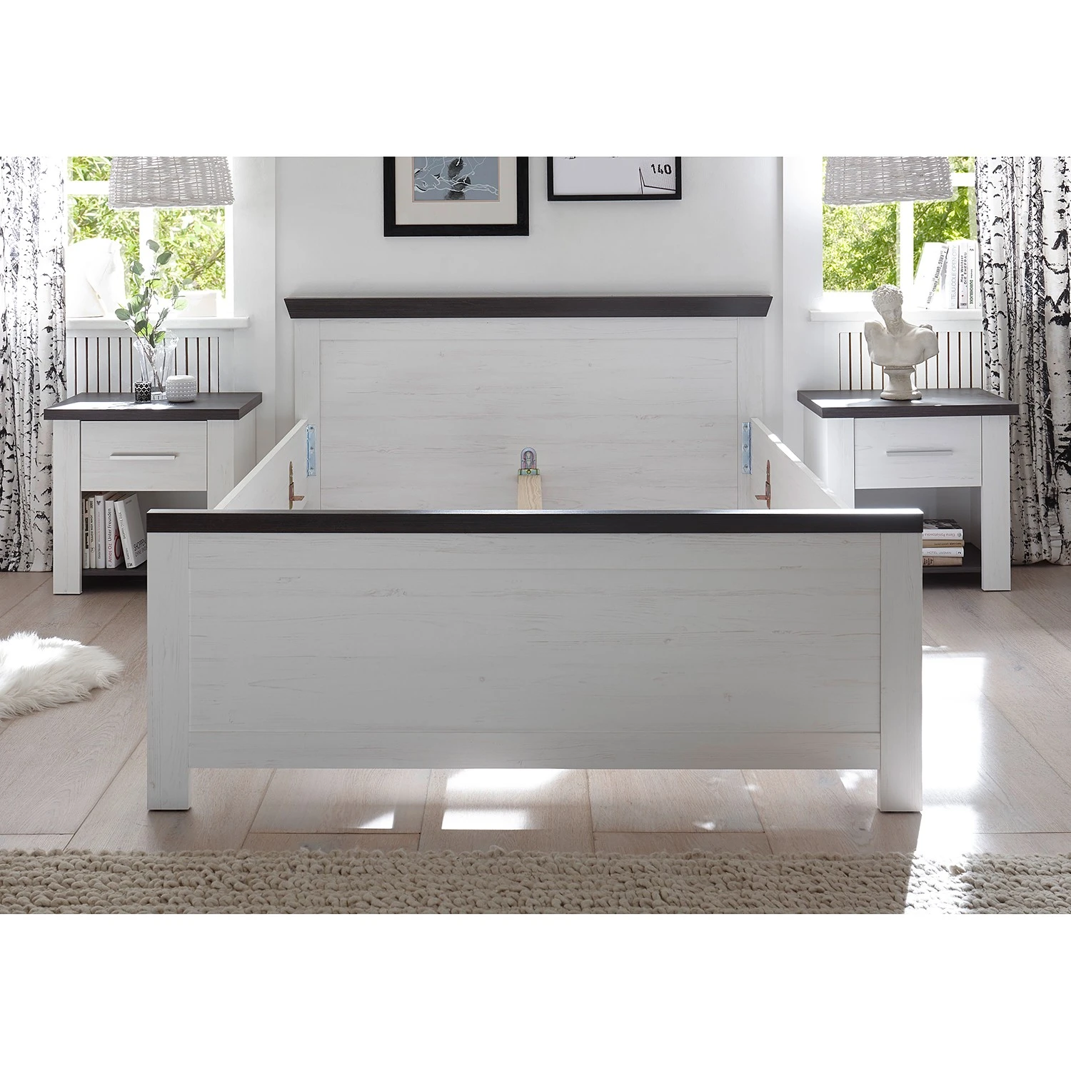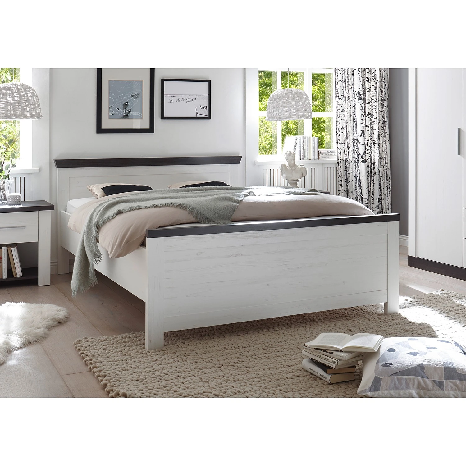 - Bettgestell: Pinie Weiß Dekor, Absetzung: Wenge Haptik Dekor