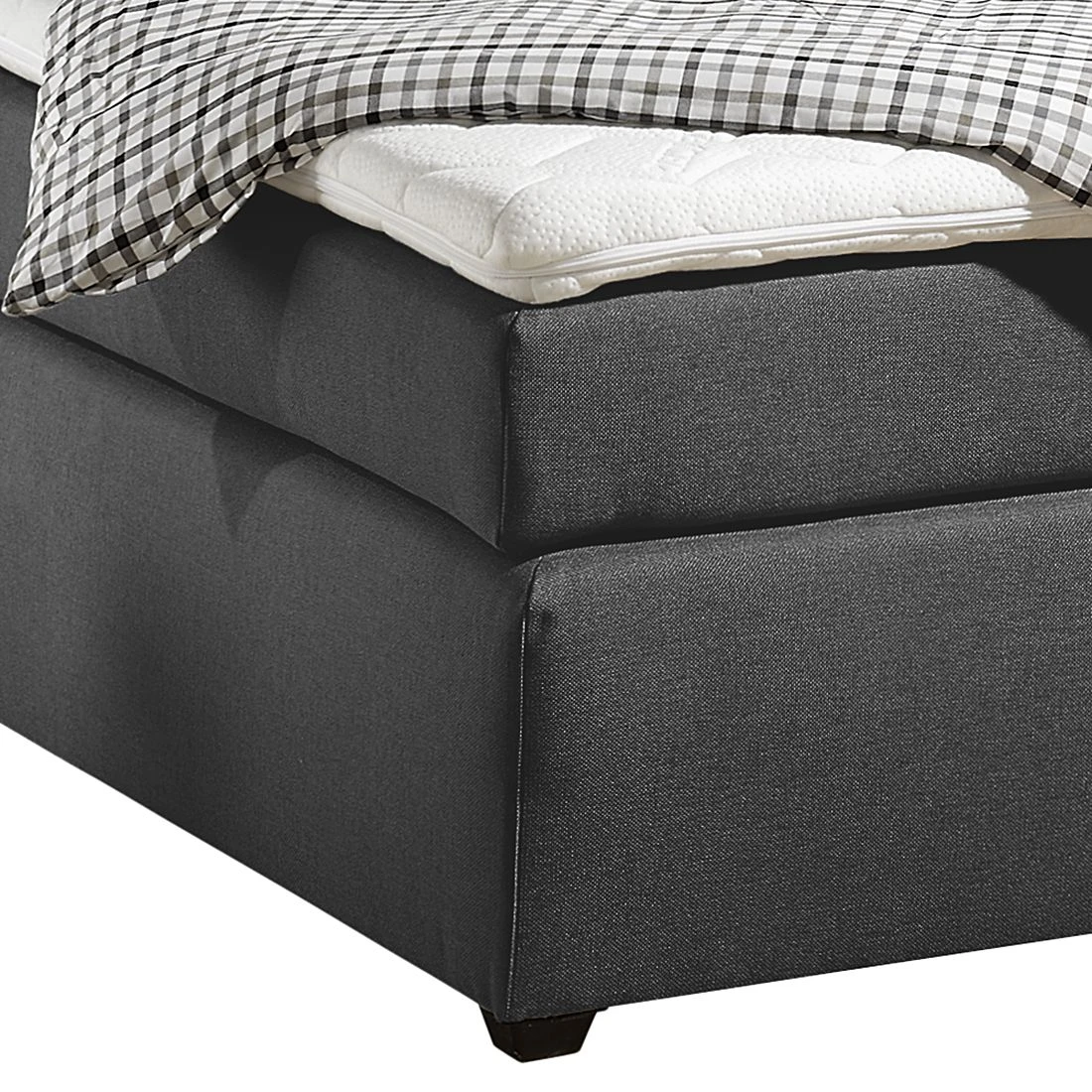 Der Unterbau ist aus massivem Holz gefertigt, das mit einem schönen Strukturstoff in Anthrazit überzogen wurde. Die Farbgebung beruhigt die Sinne und lässt den Eindruck von Zeitlosigkeit entstehen. Perfekt für das Schlafzimmer. Die dezente Knopfsteppung am aufwendig gepolsterten Kopfteil ist ein schönes Detail, das das puristische Design wunderbar betont. Die Unterpolsterung aus Bonellfederkern garantiert erstklassigen Liegekomfort, der in der Deluxe-Version von der hochklassigen 7-Zonen-Kaltschaummatratze unterstützt wird. Je nach Ihren persönlichen Vorlieben können Sie sich auch für eine Bonellfederkernmatratze oder eine 5-Zonen-Taschenfederkernmatratze entscheiden. Der Topper mit dem abnehmbaren TENCEL-Doppeltuchbezug sorgt für das i-Tüpfelchen an Bequemlichkeit.