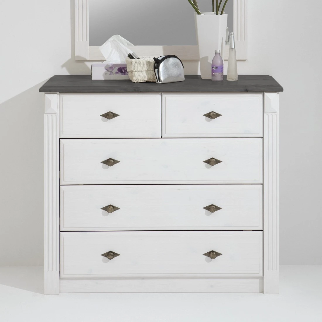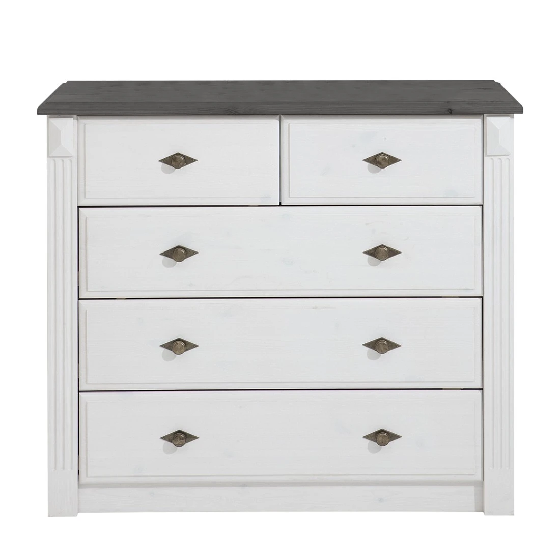 Mit dieser Kommode haben Sie ein Möbelstück aus dem Hause Maison Belfort mit Platz für die unterschiedlichsten Gegenstände. Mehrere Schubladen versprechen bei diesem Modell viele Möglichkeiten zum Unterbringen Ihrer Dinge. Das Kiefernholz der Kommode hat folgenden Vorteil: Es sorgt für ein natürliches Flair.