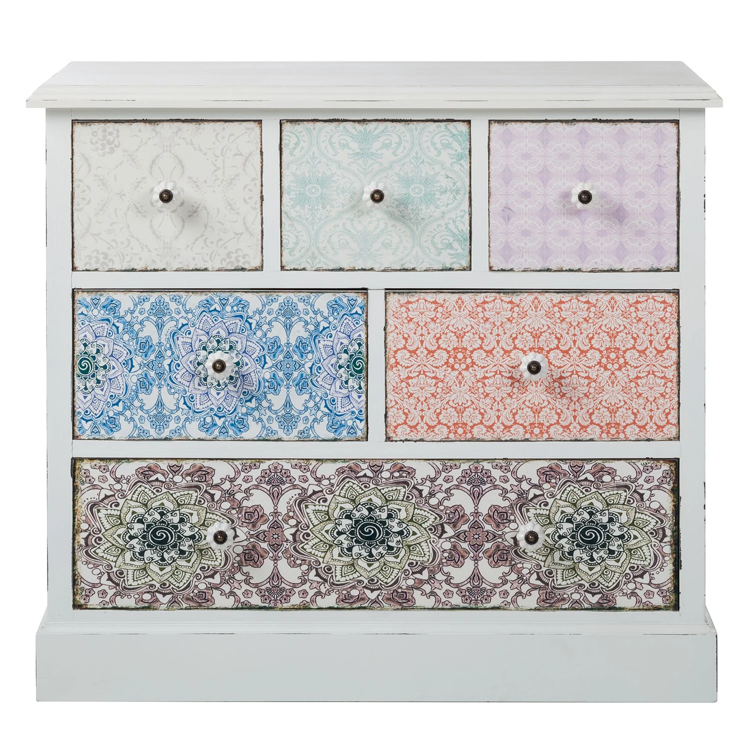 Mit dieser Kommode bekommen Sie ein Möbelstück aus dem Hause Maison Belfort mit Platz für alles, was Sie staubgeschützt lagern möchten. Der Stauraum dieses Modells verbirgt sich hinter mehreren praktischen Schubladen und Türen. Das vielseitige MDF der Kommode hält zahlreichen Belastungen stand.