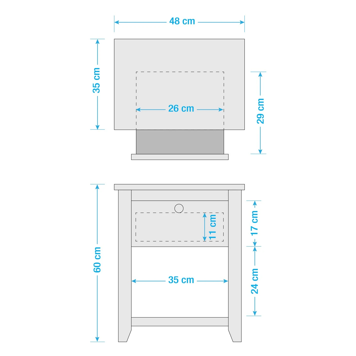 - Front & Korpus: Massivholz Kiefer, lackiert